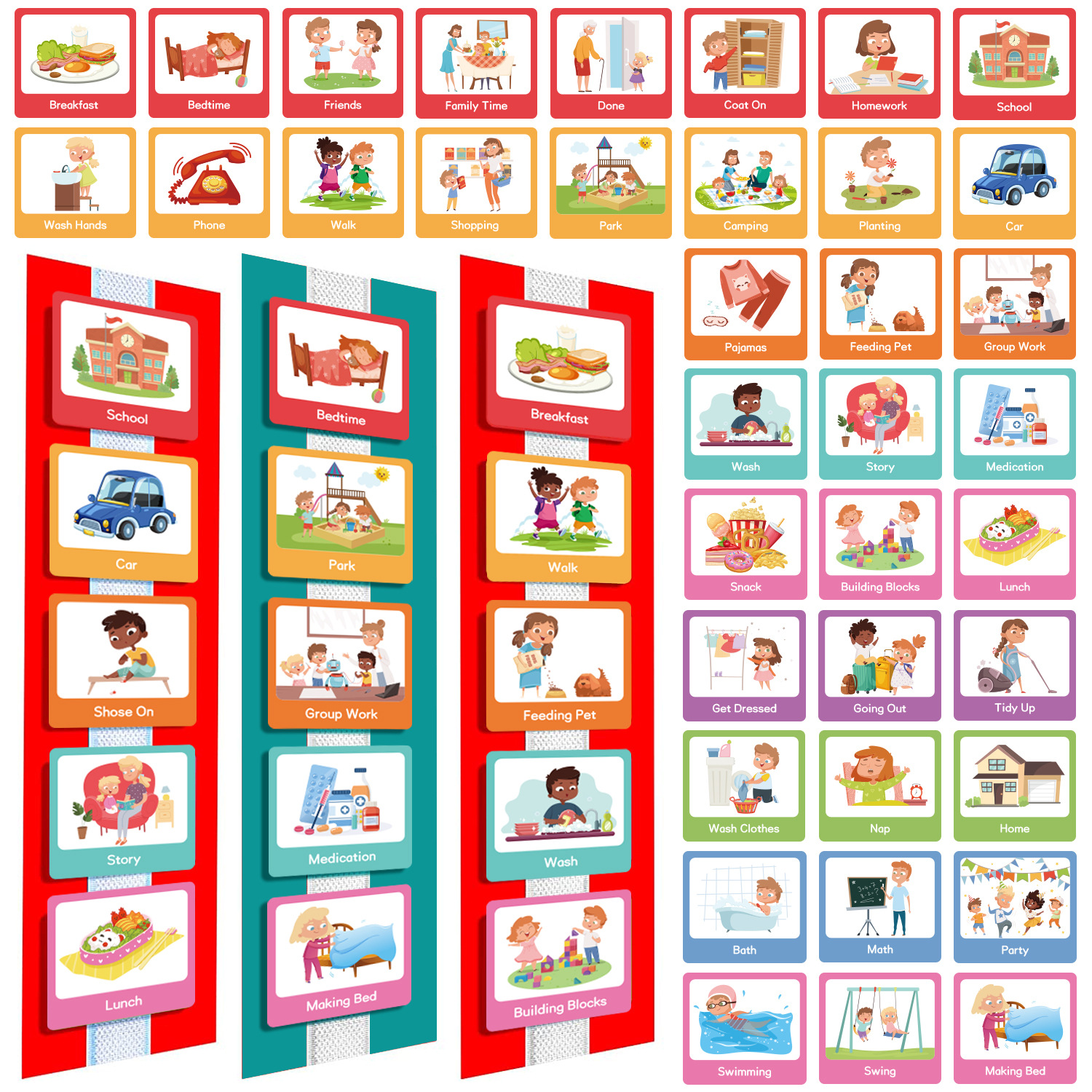 어린이 시각 시간 차트 비언어 의사 소통 시각 지원 일정 계획 일일 카드 조기 교육 완구