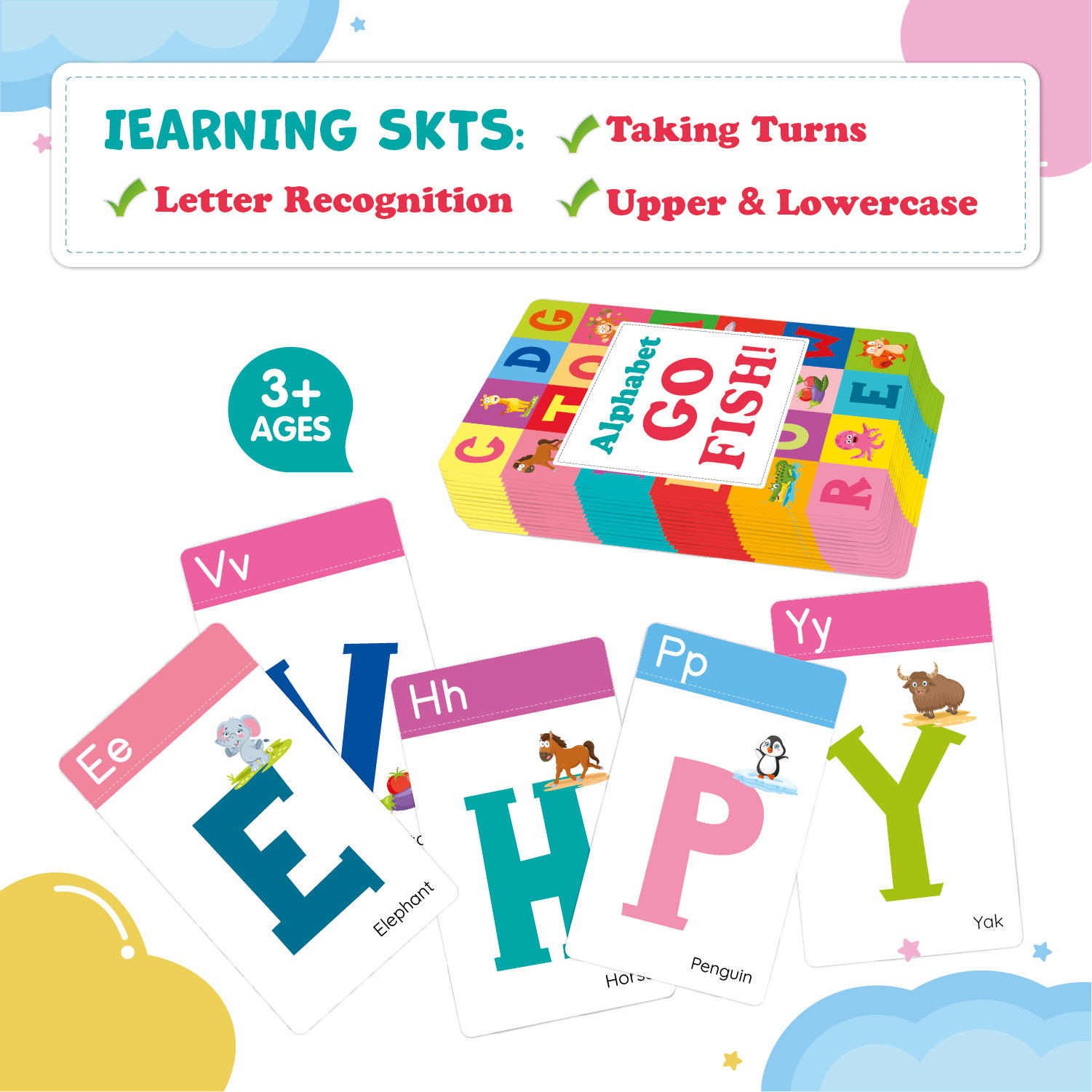 Bview Art 52 시트 알파벳 Go Fish 카드 게임 - 어린이를위한 ABC 문자 일치 플래시 유치원 학습 교육 장난