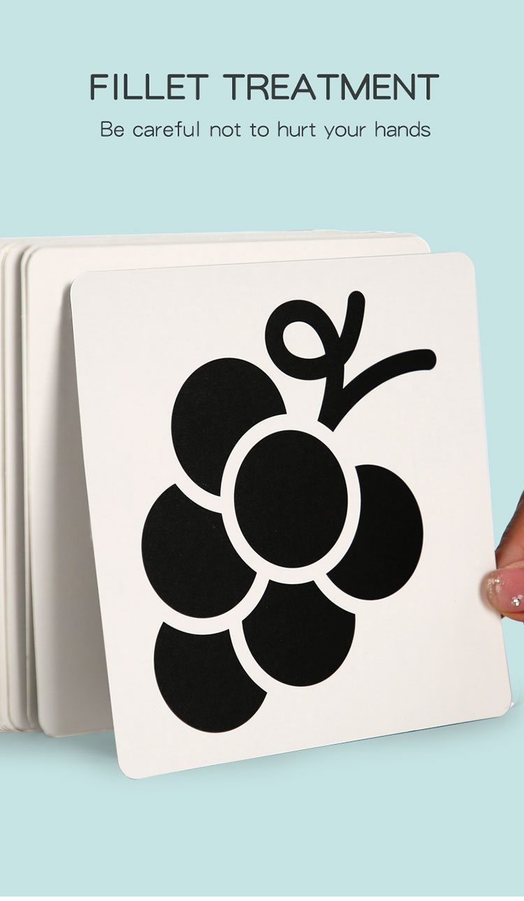 4. 아기의 건강을 위한 안전한 재료:시각 자극 카드는 양면 필름으로, 무광택 표면에 눈부심 방지 처리가 되어 있어 아기의 눈에 해를 끼치지 않습니다.친환경 콩기름 잉크로 인쇄된 신생아 대비 카드는 밝은 색상, 신선하고 냄새가 없습니다.
