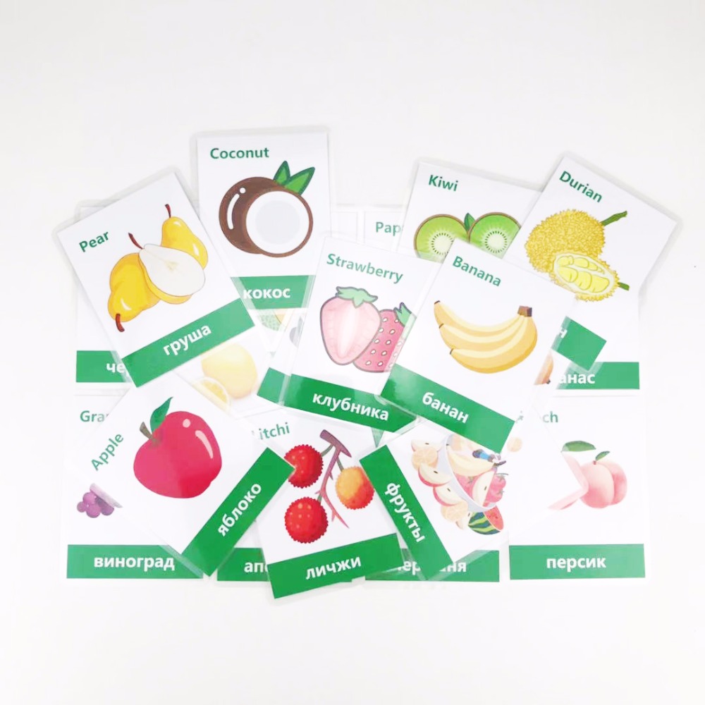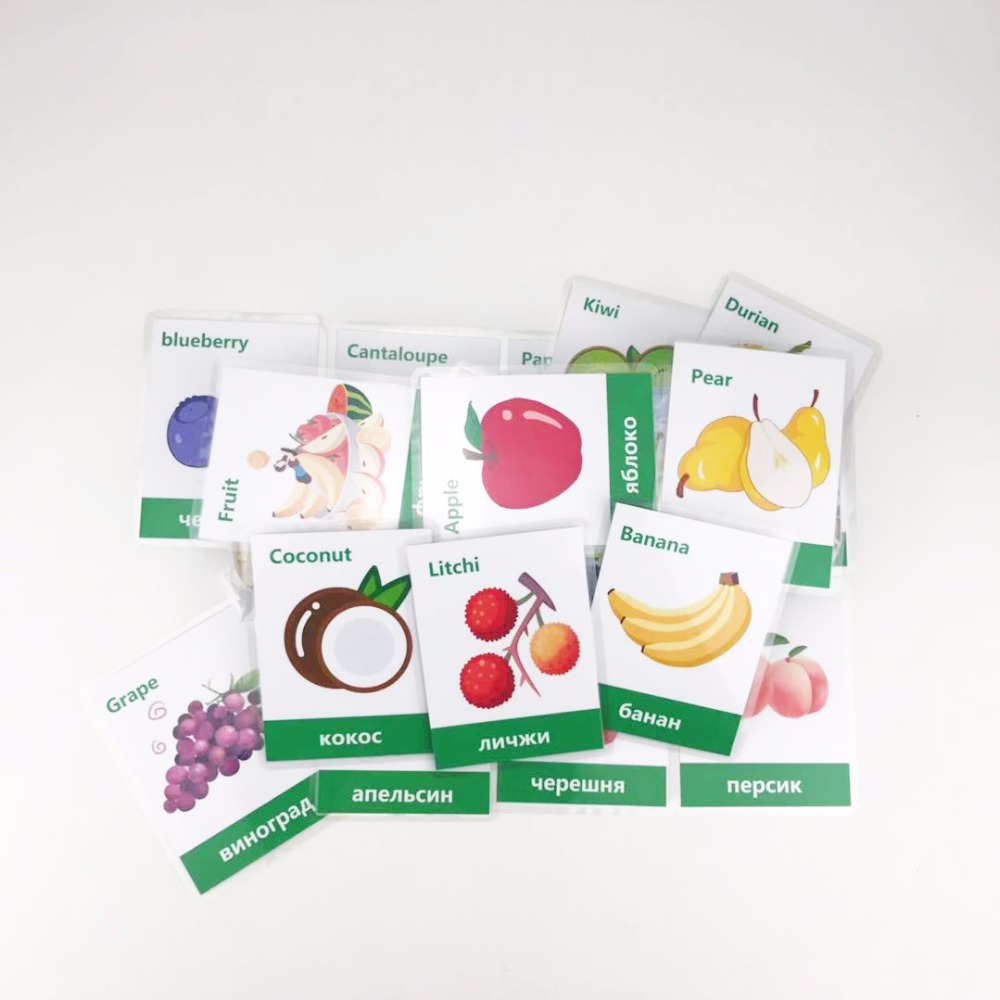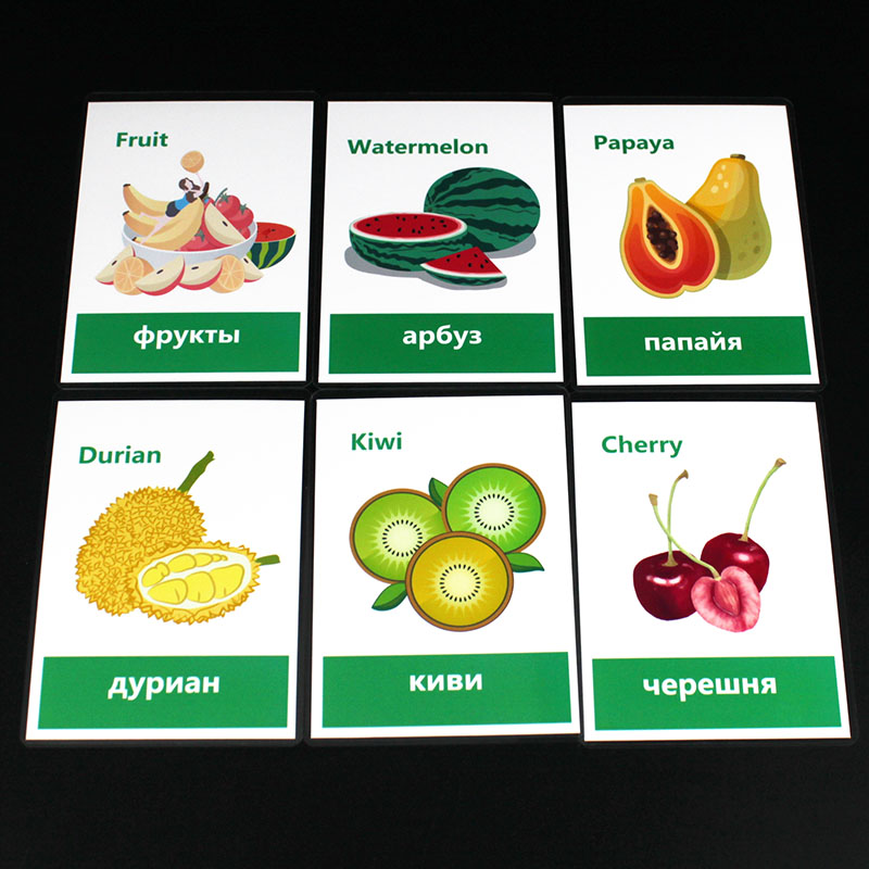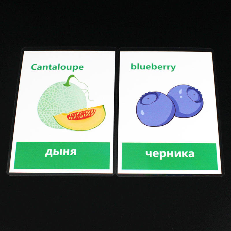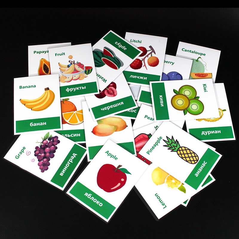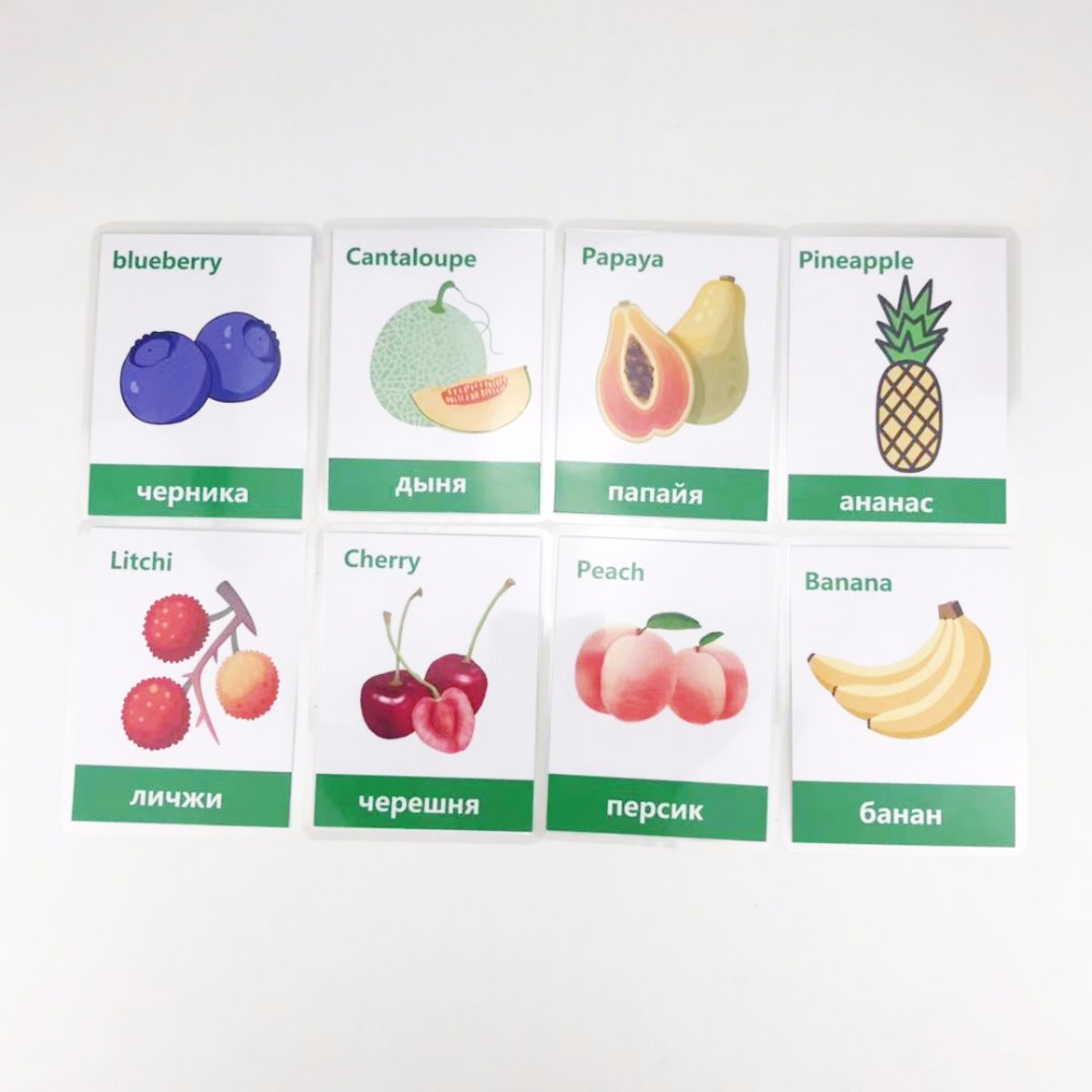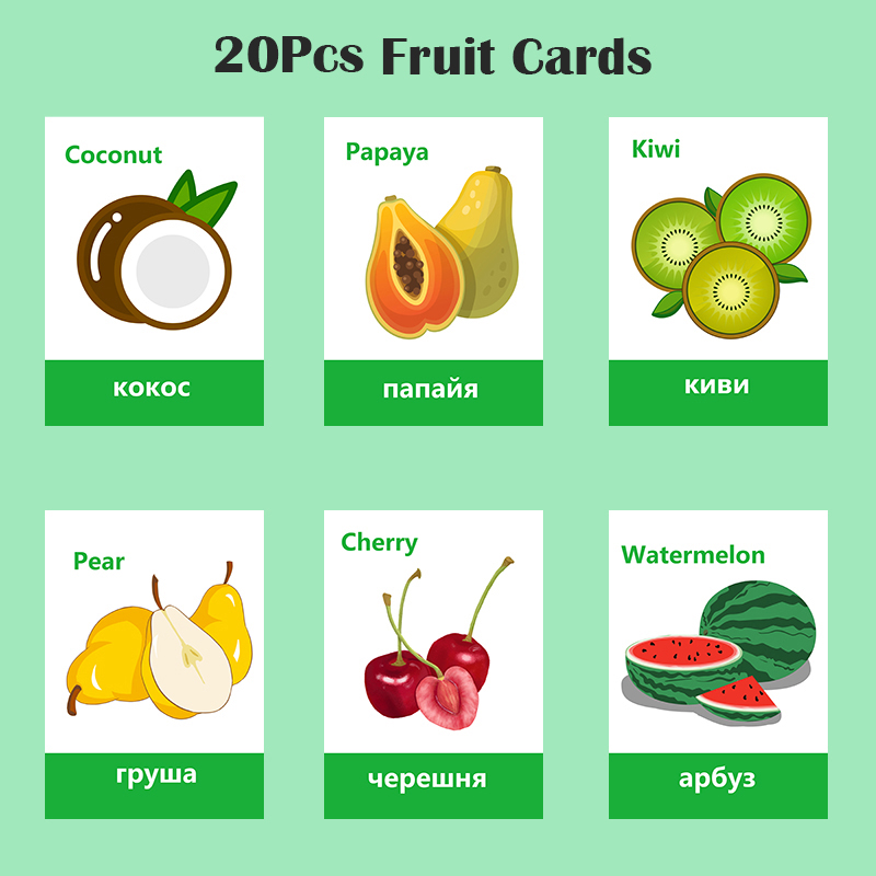 20Pcs 러시아어 과일 몬테소리 영어 단어 포켓 플래시 카드 게임 퍼즐 카드 어린이를위한 영어 교육 장난감 학습 어린이