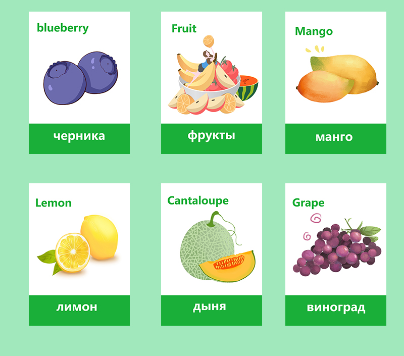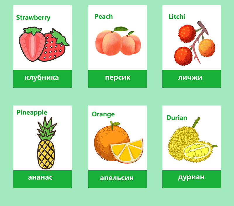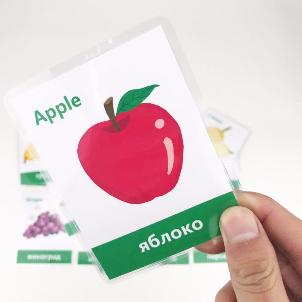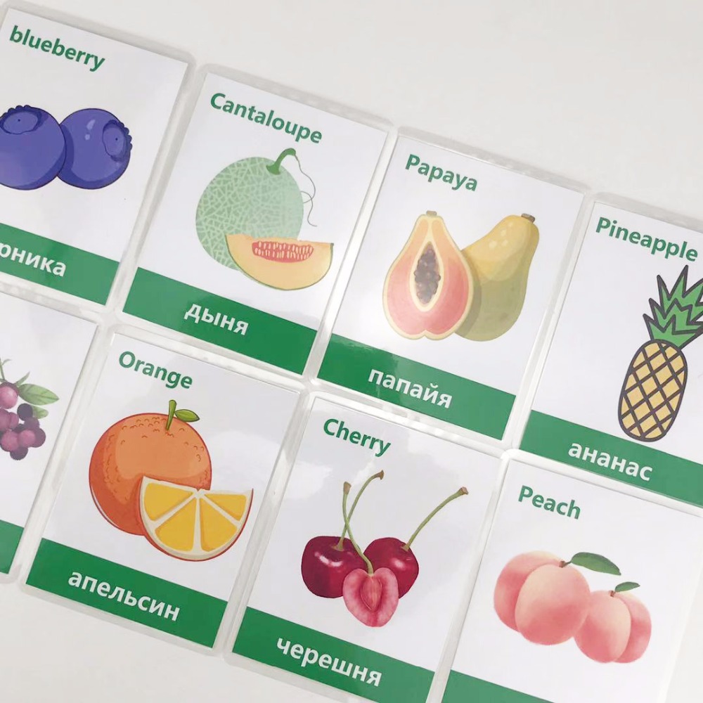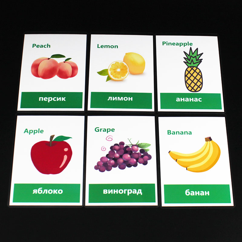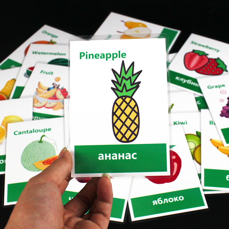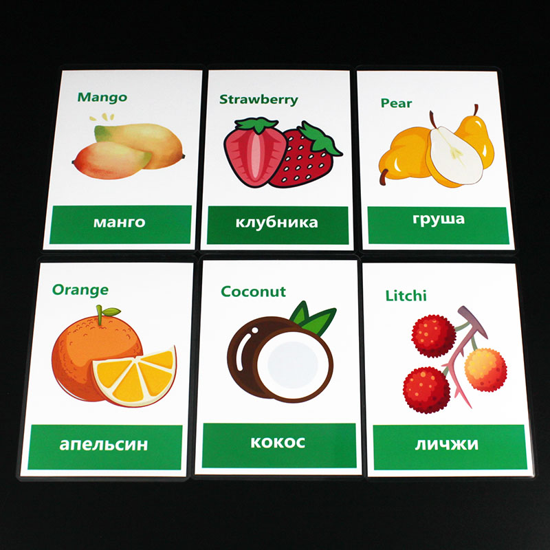 20Pcs 러시아어 과일 몬테소리 영어 단어 포켓 플래시 카드 게임 퍼즐 카드 어린이를위한 영어 교육 장난감 학습 어린이