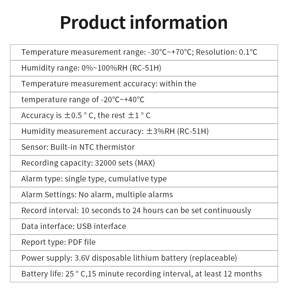 | 모델 번호 | RC-51H Temperature and Humidity Data Logger |