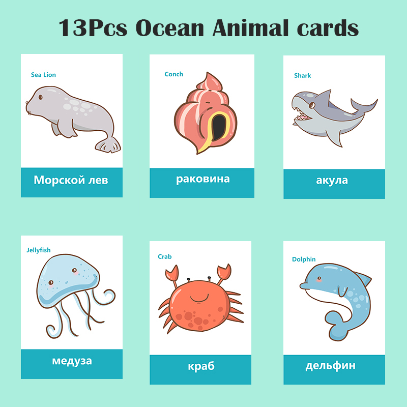 13PC 러시아 바다 동물 Educativos 전치사 배우기 영어 퍼즐 몬테소리인지 카드 퍼즐 장난감 어린이 선물