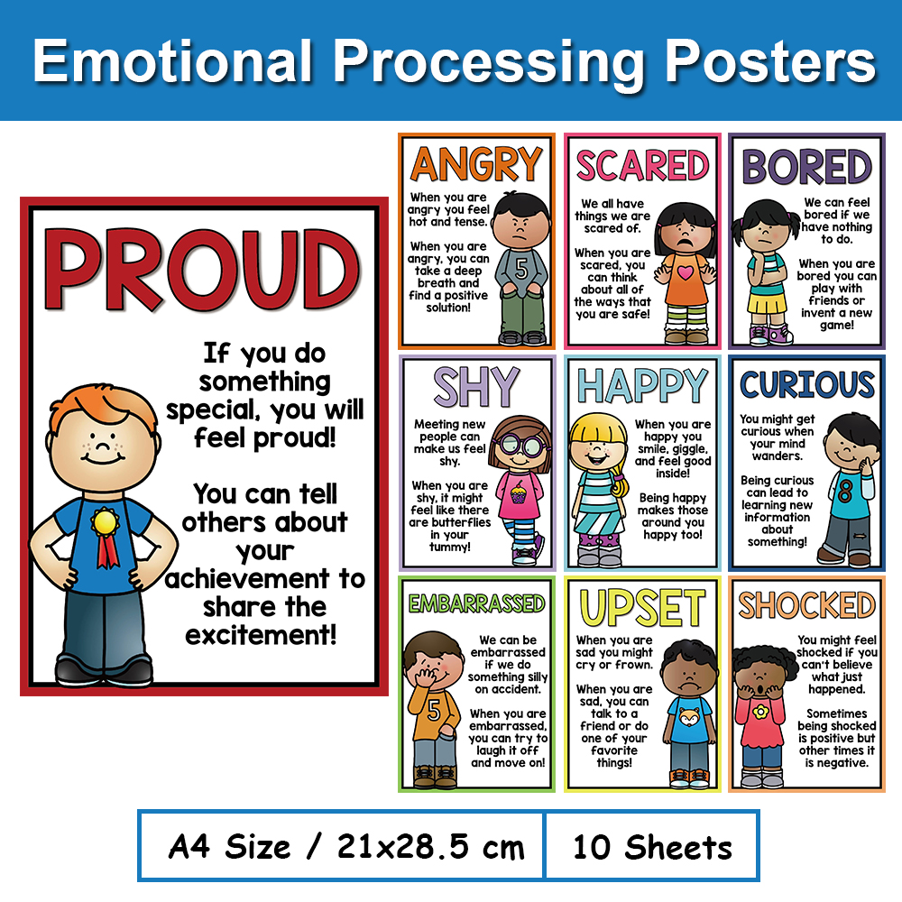 아동용 감정 처리 포스터 차트 벽 데코 성장 사고 방식 교사 교육 보조 10 개