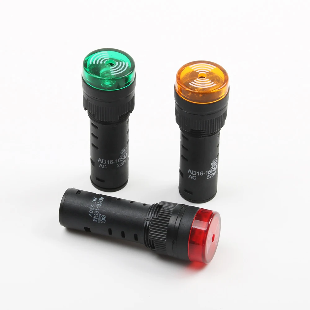 1Pcs AD16-16SM 16mm 12V 24V 110V 220V 플래시 신호등 빨간색 경고 부저 경고음 산업용 플라스틱 표시기
