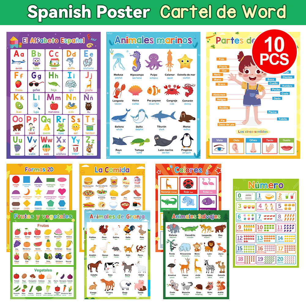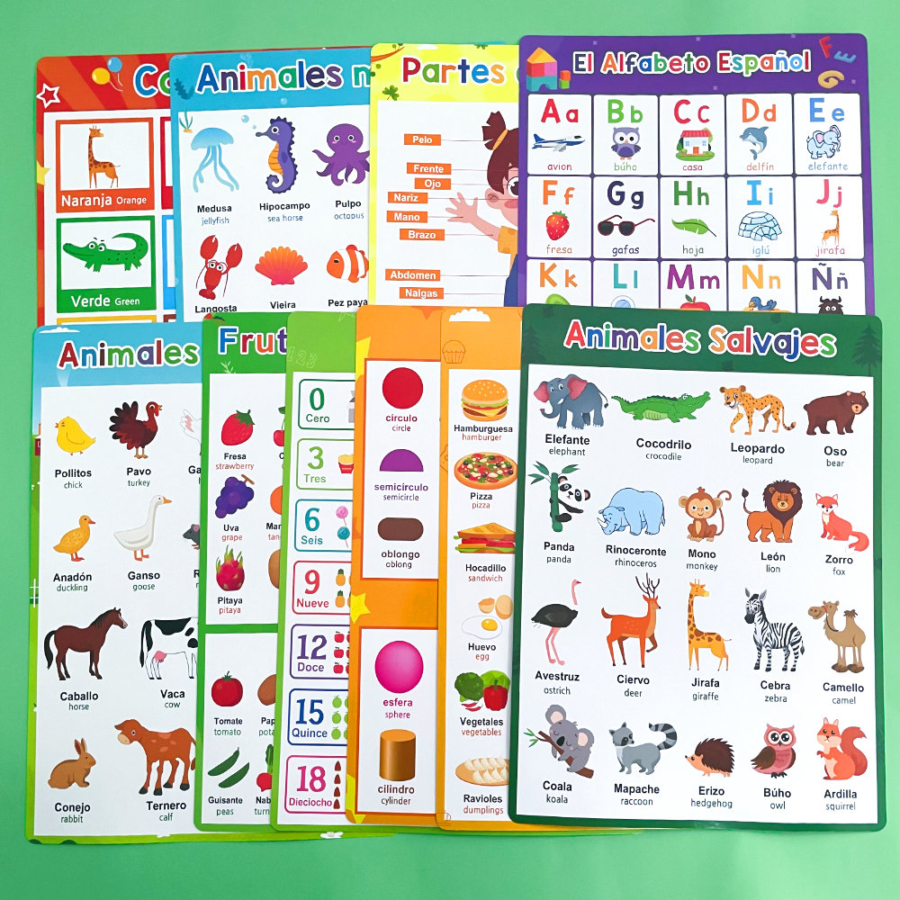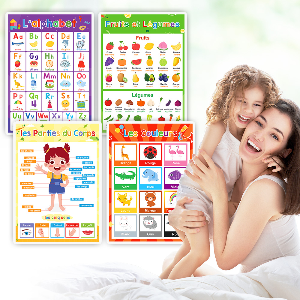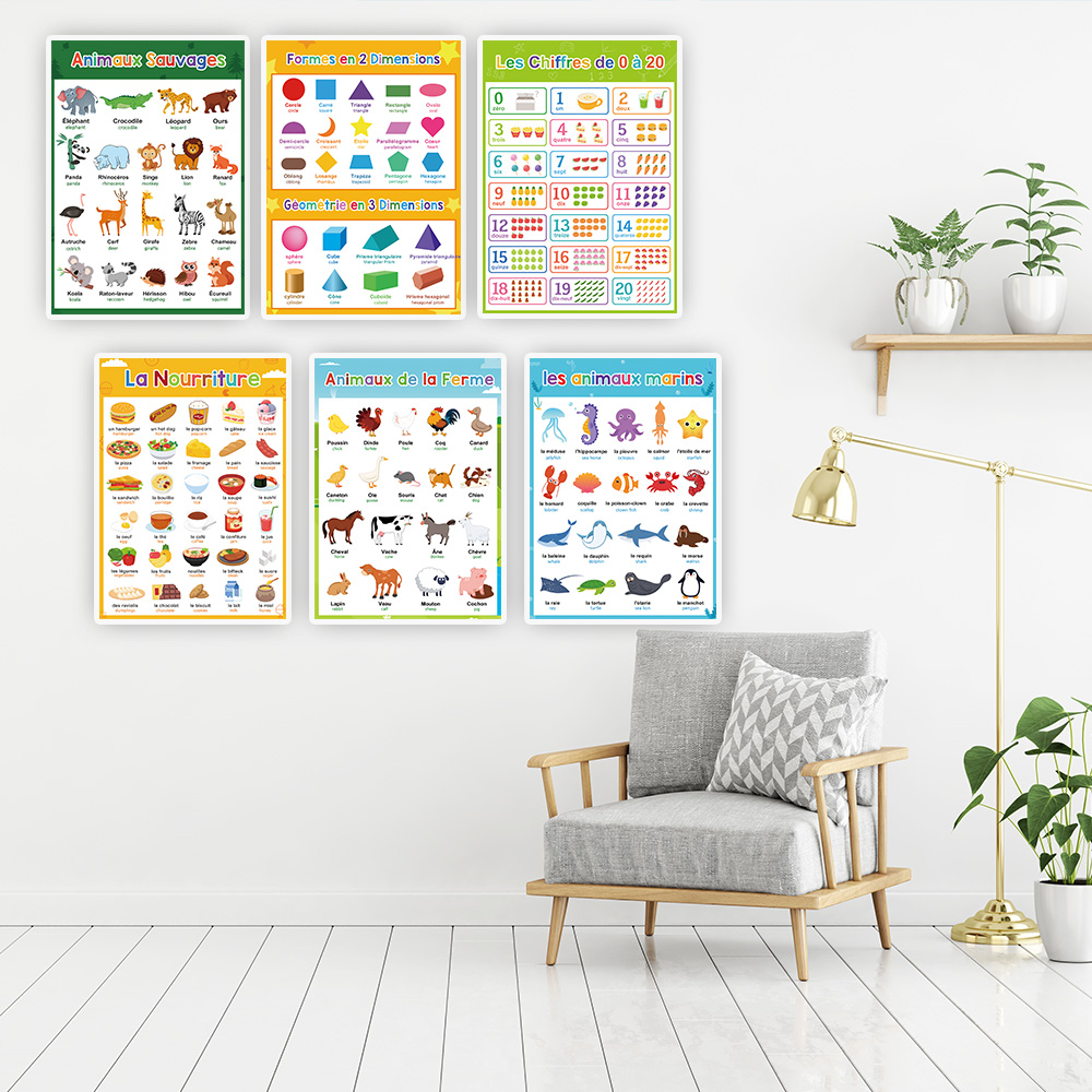 10 테마 어린이 학습 프랑스어 영어 큰 카드 장난감 학교 교실 장식 A4 포스터 교육 완구