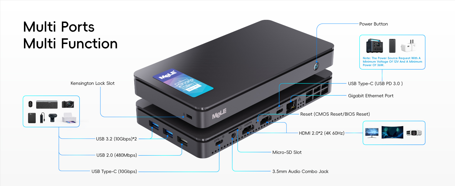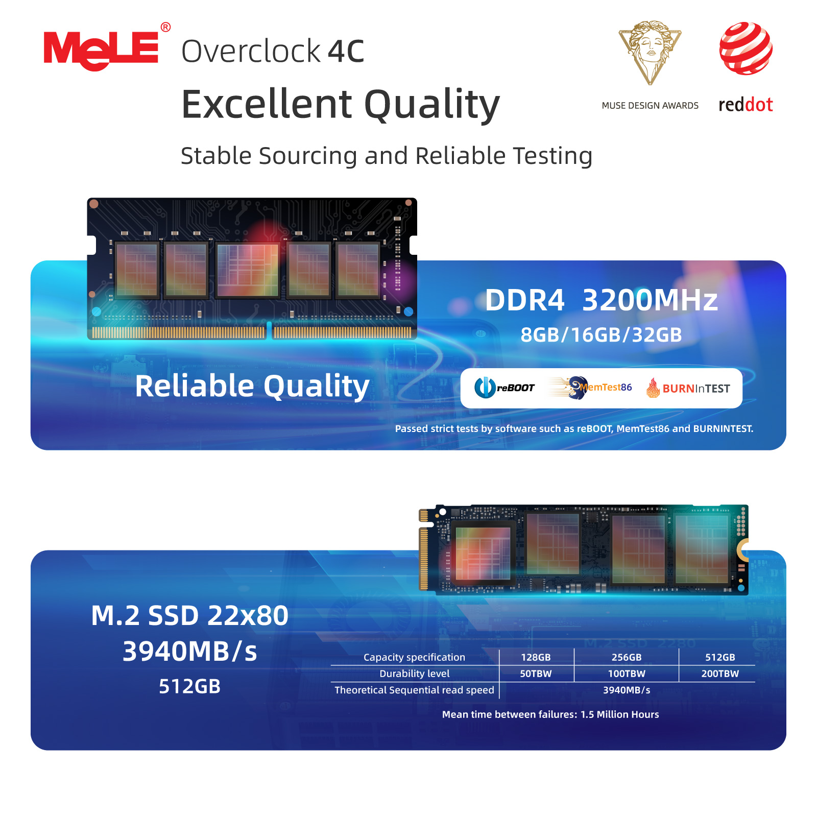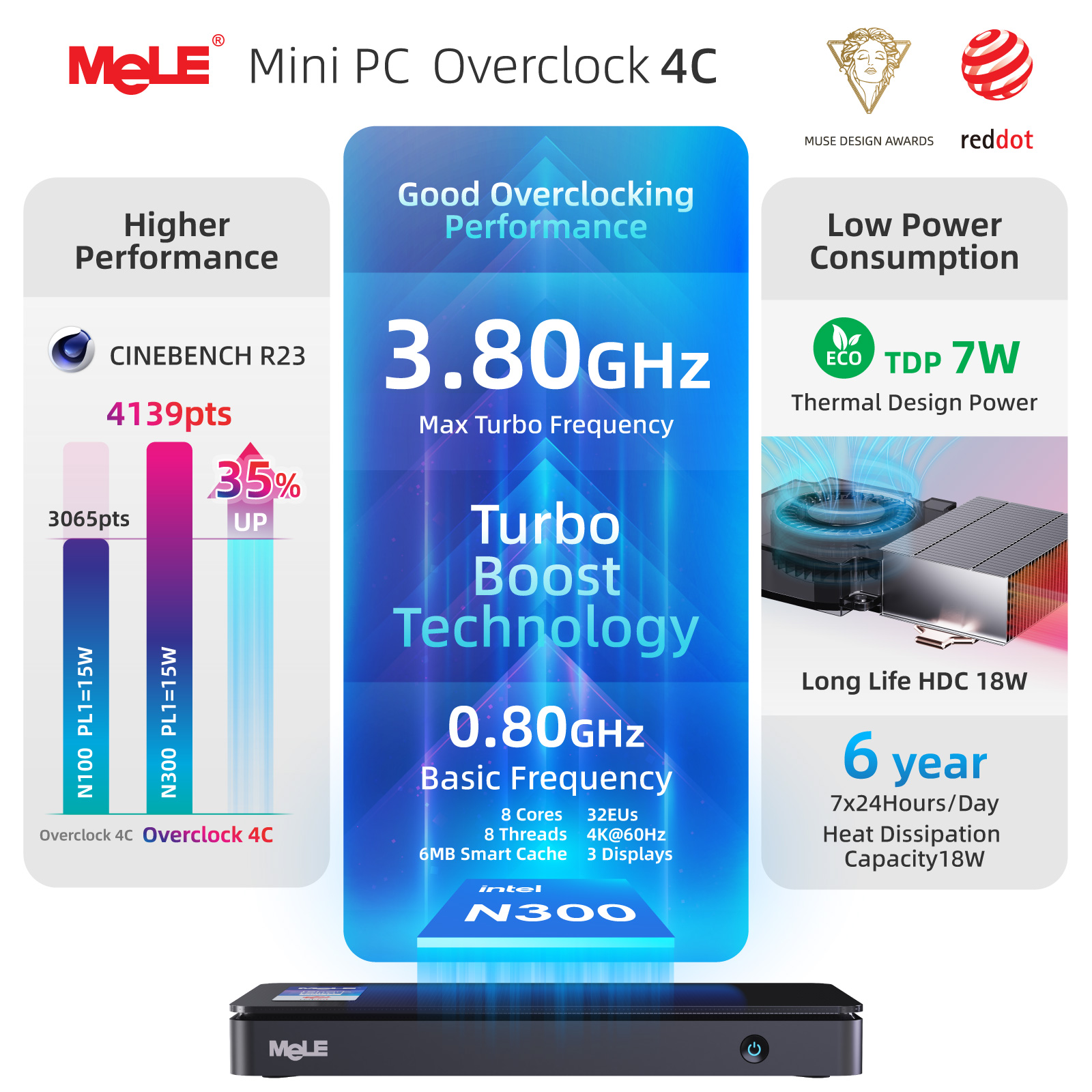 MeLE 미니 PC 오버클럭4C Reddot 우승자 성능 N100 마이크로 컴퓨터