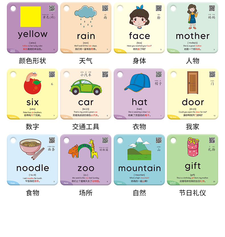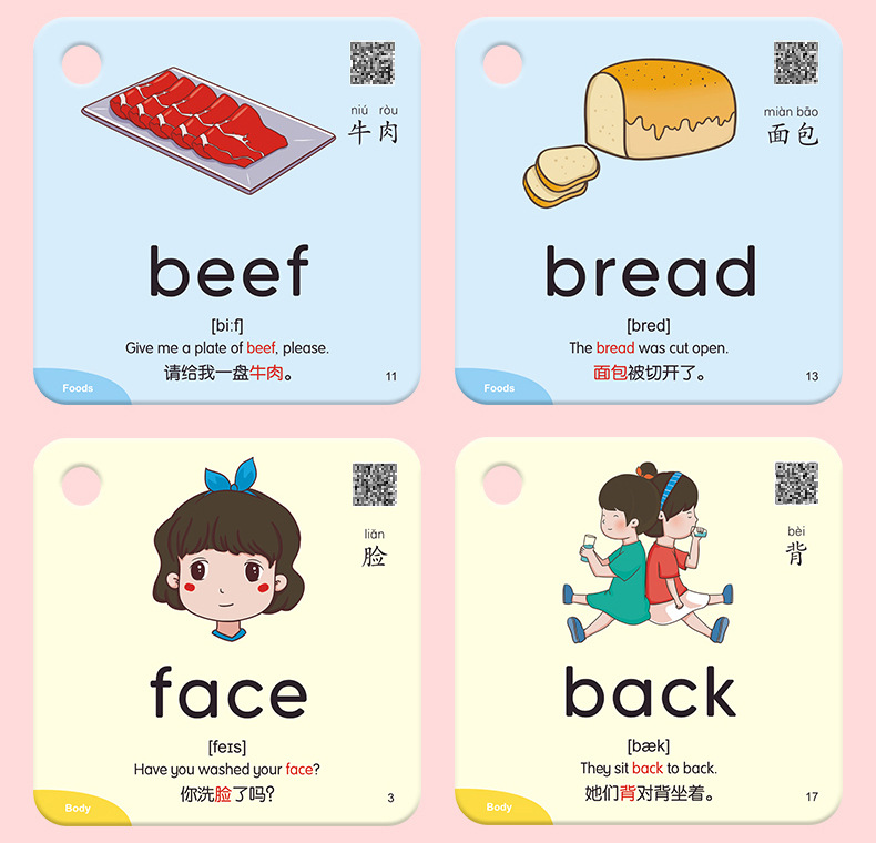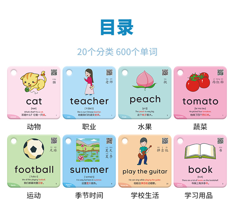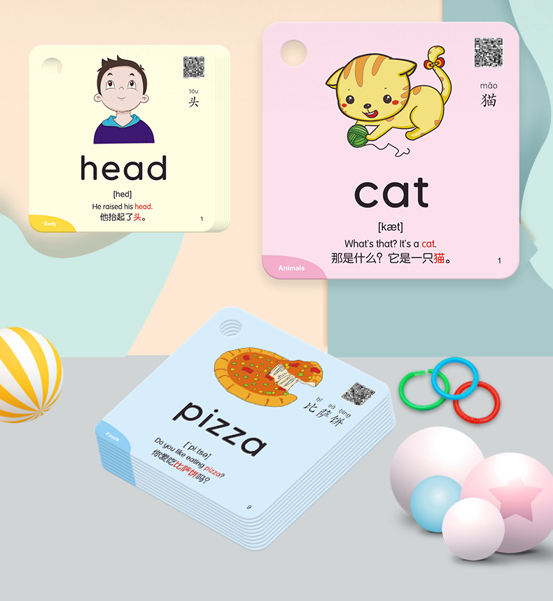 교육용 20 카테고리 인지 학습 카드 동물 모양 색상 영어 도서 600 단어