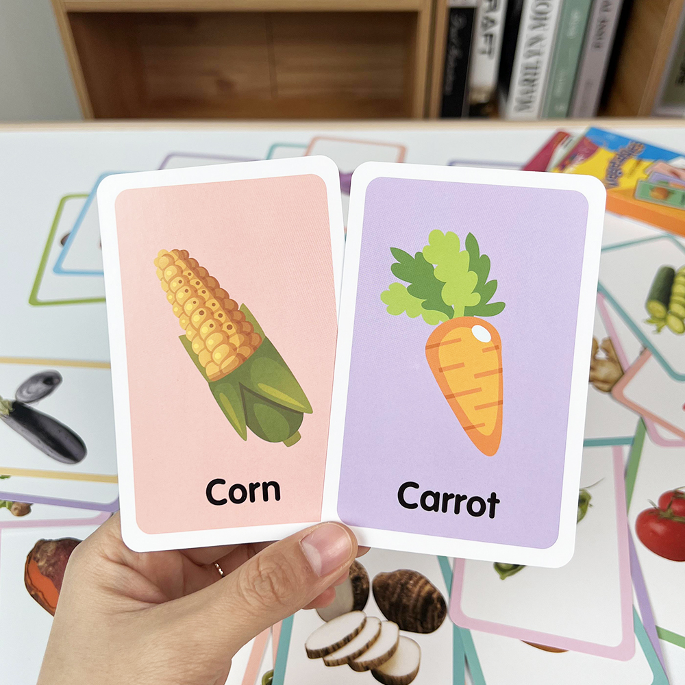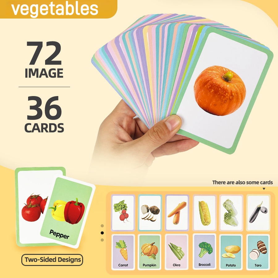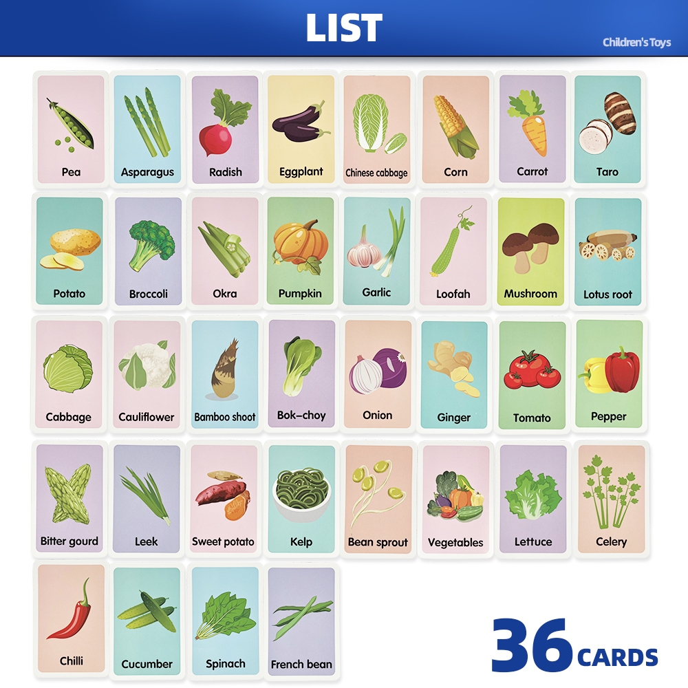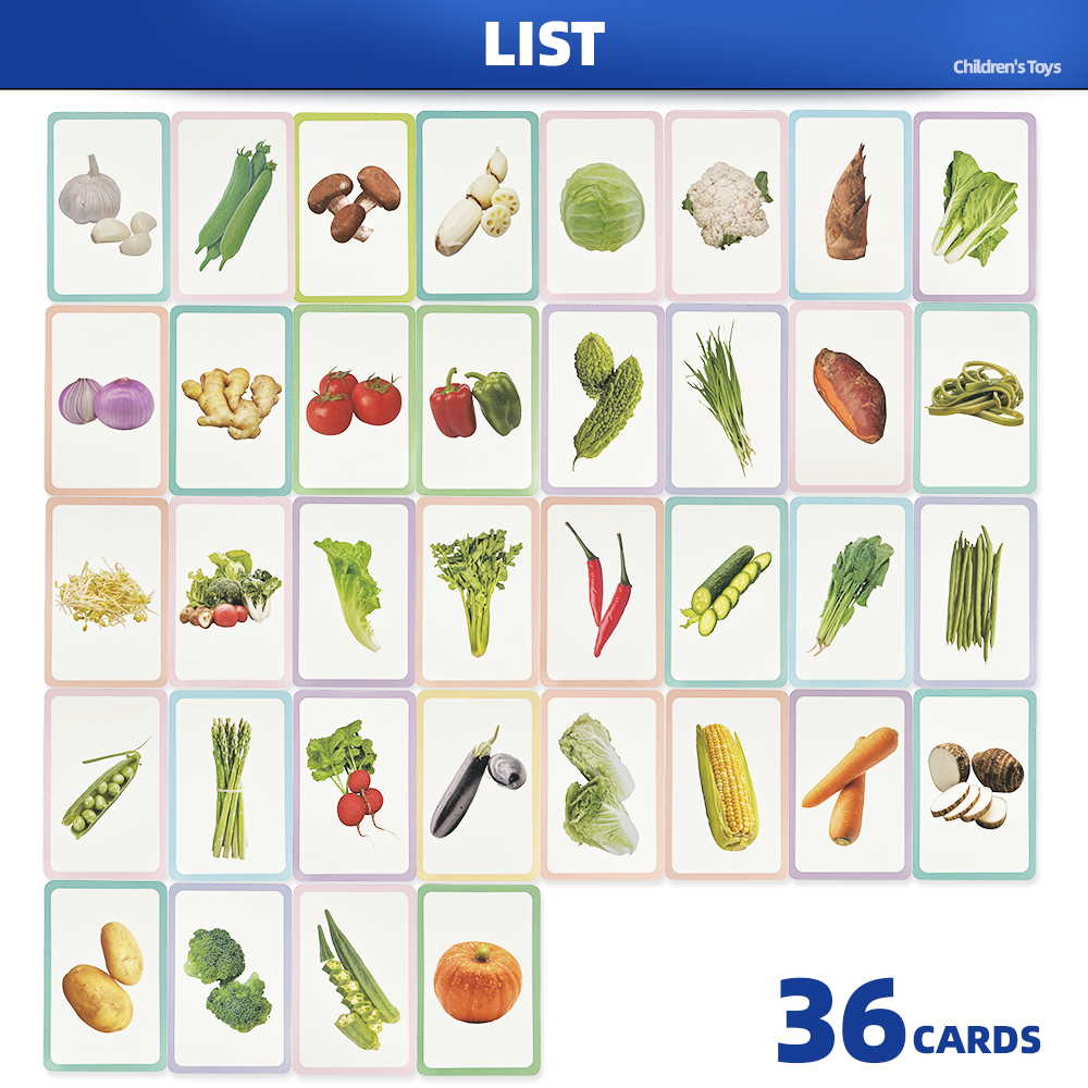 36개의 양면 야채 인지 카드 어린이 계몽 조기 교육 퍼즐 그림 읽기 학습 개체 인식 단어