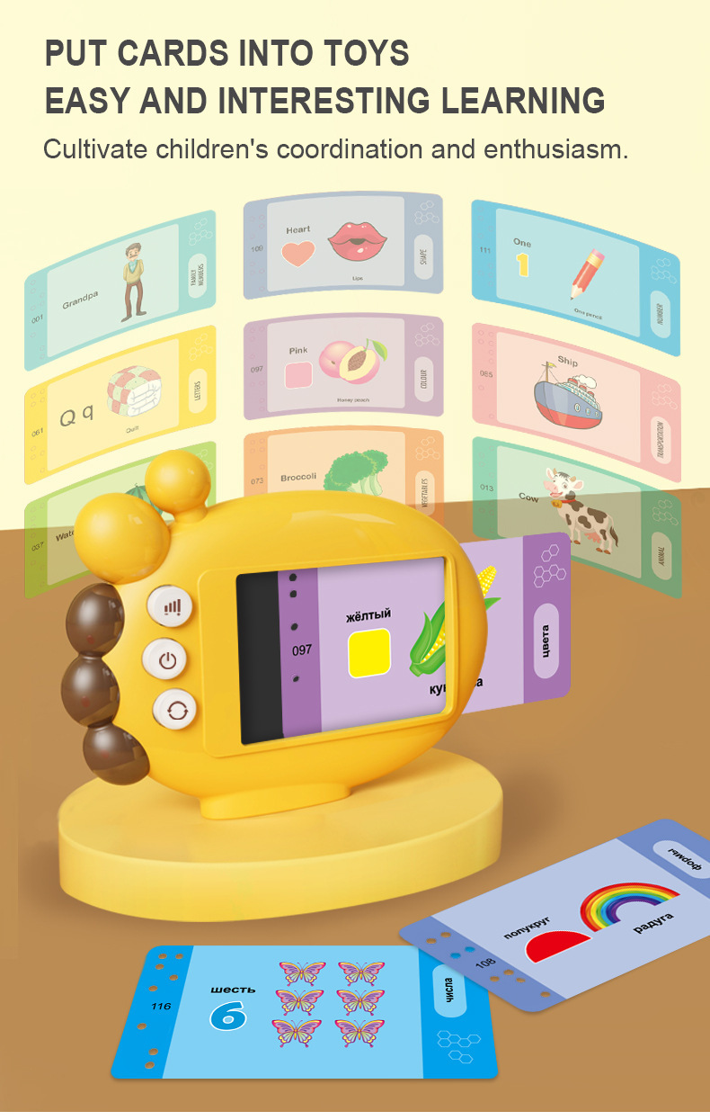어린이 언어 학습 장난감 러시아어 영어 철자 전자 책 말하기 플래시 카드 교육 유아 2-6 세 독서 기계