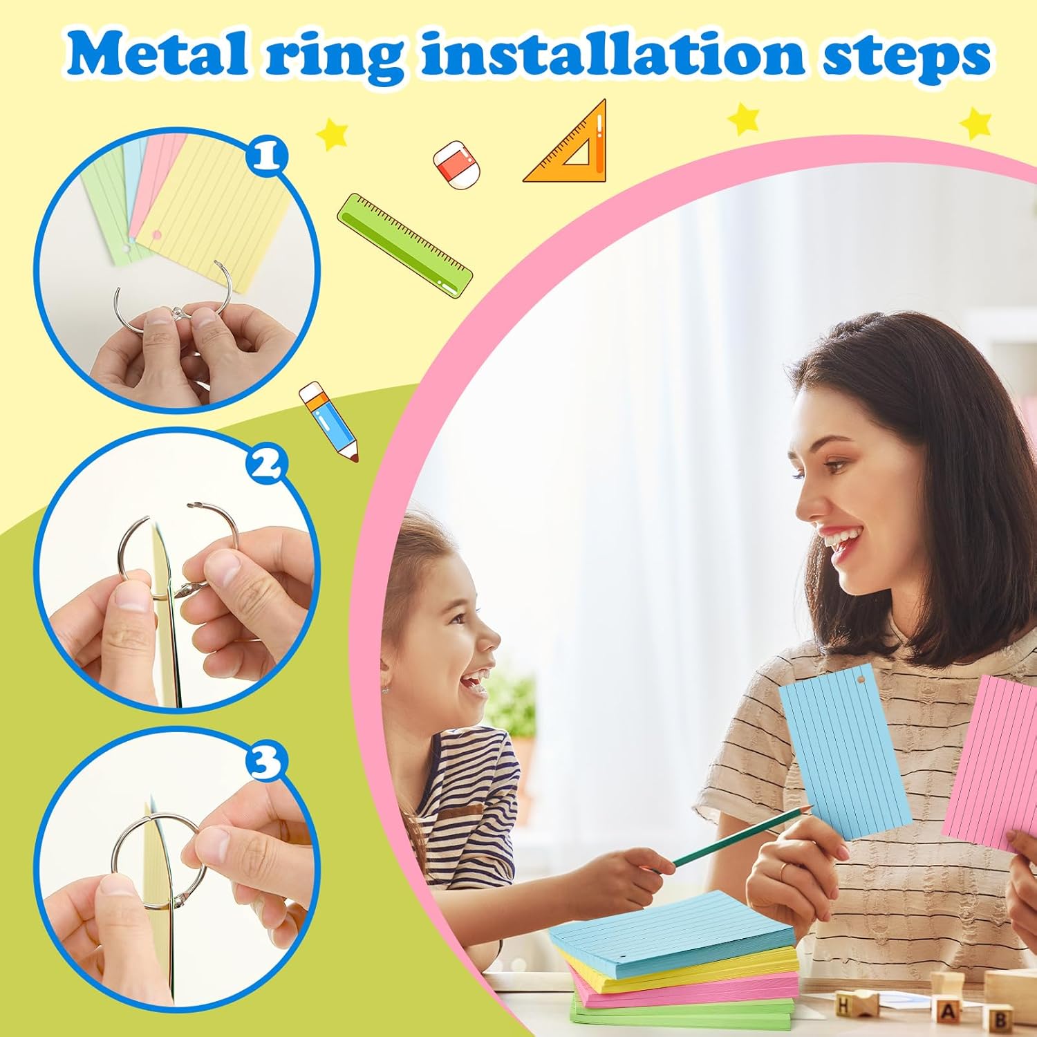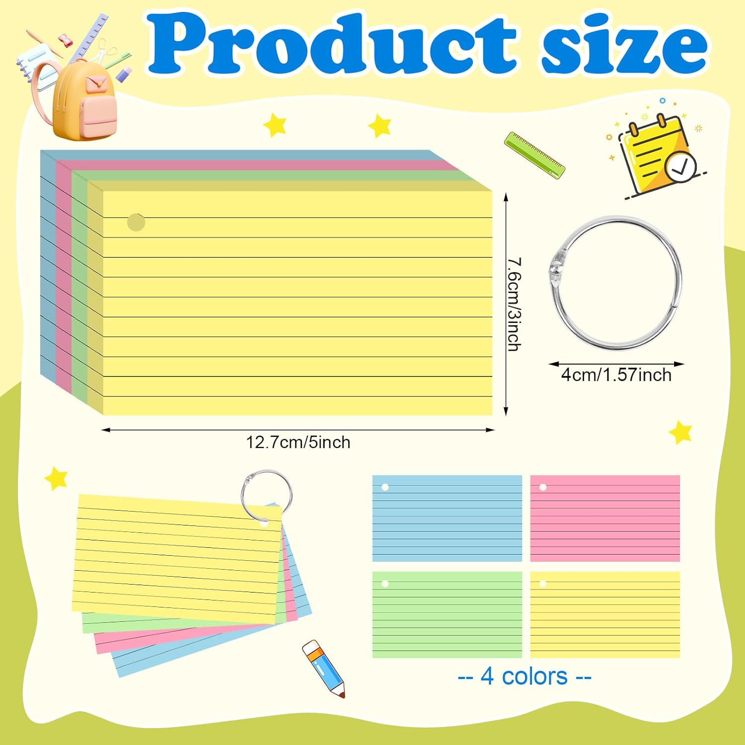 링 라인 플래시 카드 노트 컬러 인덱스 학교 용품 대학 공부용 3x5 인치 4 팩