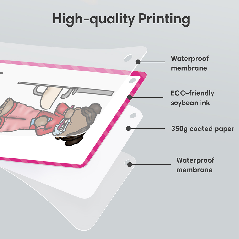 혁신적인 디자인: 각 단어에는 귀여운 만화 이미지가 함께 제공되어 어린이의 단어 기억력을 깊게 할 수 있습니다.양면 인쇄는 제품의 비용과 무게를 줄여줍니다.이러한 이유로 우리는 이 비용 효율적인 제품을 제공합니다.