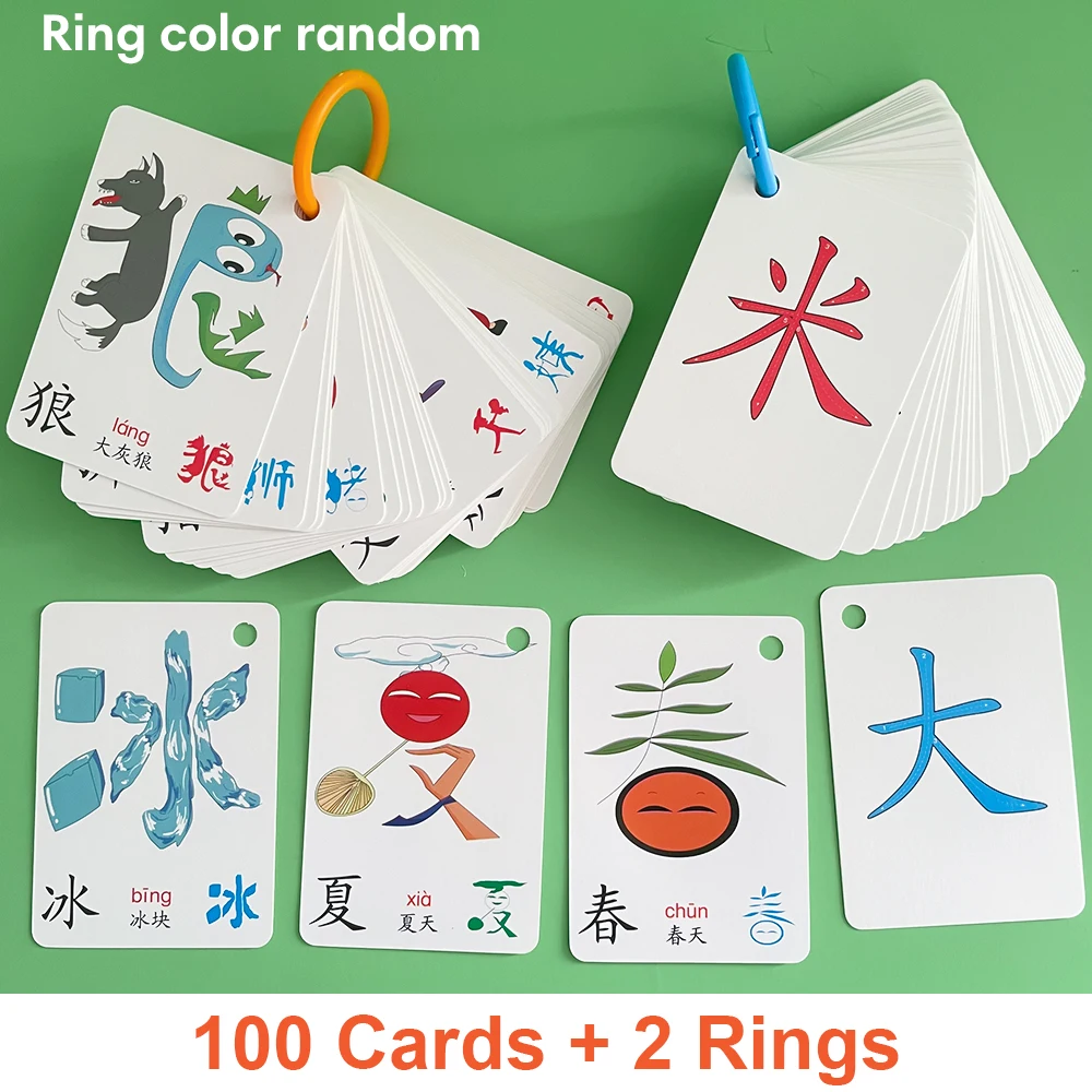 100 카드 어린이 학습 한자 그림 문자 읽고 쓰기 병음 Flashcards 계몽 교육 장난감 아이를위한