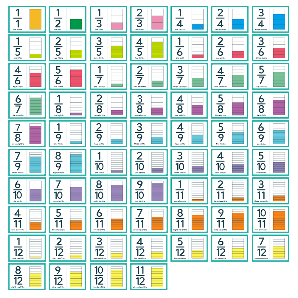 35 카드 어린이를 위한 수학 분수 플래시 학습 장난감 교육 보조-12분의 1까지 훌륭한 자료