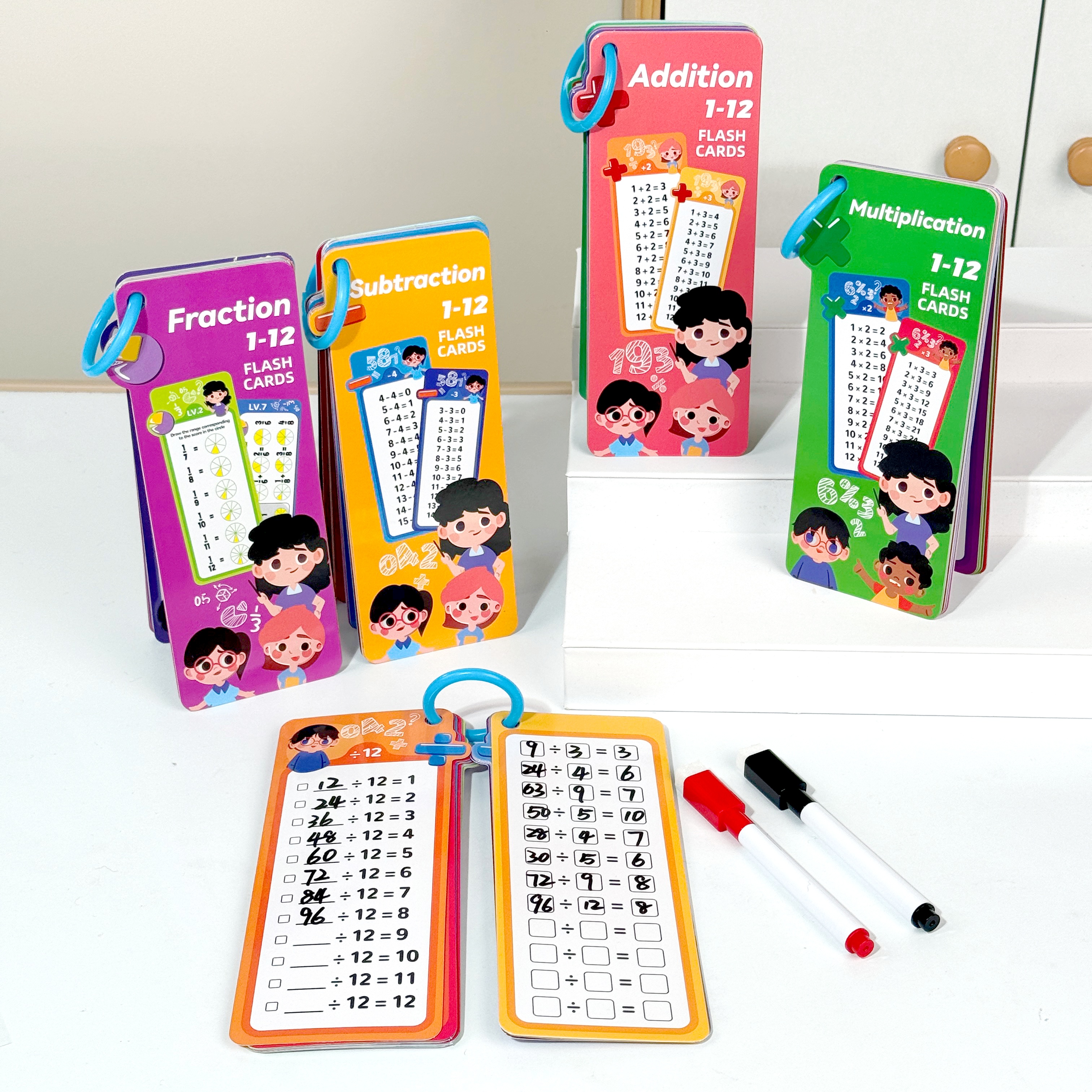 디지털 학습 플래시 카드 덧셈 뺄셈 곱셈 나눗셈 분수 수학 메모리 15장 지울 수 펜 장난감 2개
