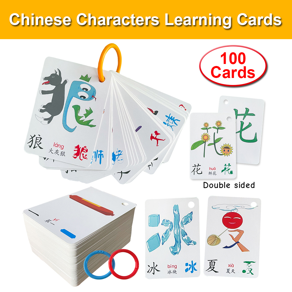100개의 상형문자 카드 만다린 학습 플래시카드 문자 스트로크 순서 시각적 어휘 부스트
