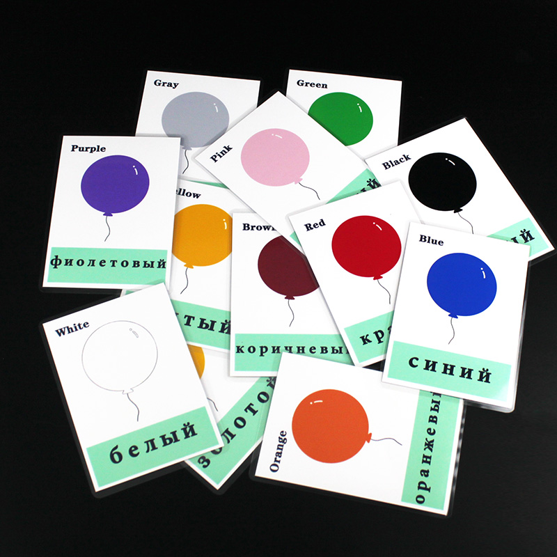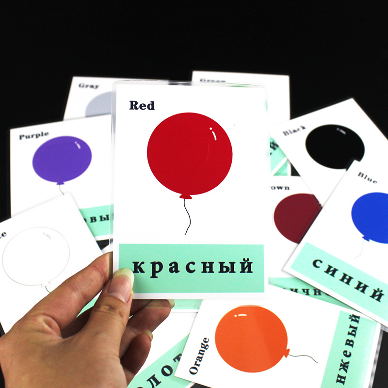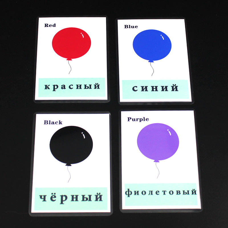 12Pcs 색상 러시아어/영어 학습 몬테소리 단어 알파벳 카드 플래시 카드 조기 교육 어린이 게임 포켓 키드 카드