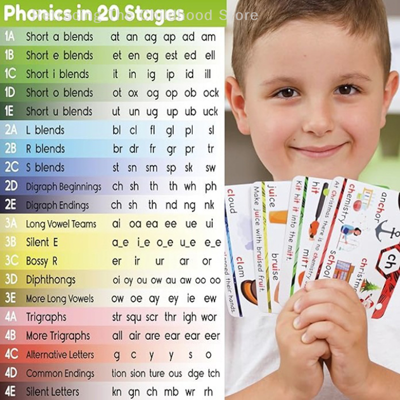 1.파닉스, 발음을 마스터하고 읽기 능력을 획기적으로 향상시키세요. 플래시카드 60개; 분류 링 4개; 480개의 단어와 그림; 120개의 문장; 4가지 난이도, 20개의 음소 그룹.