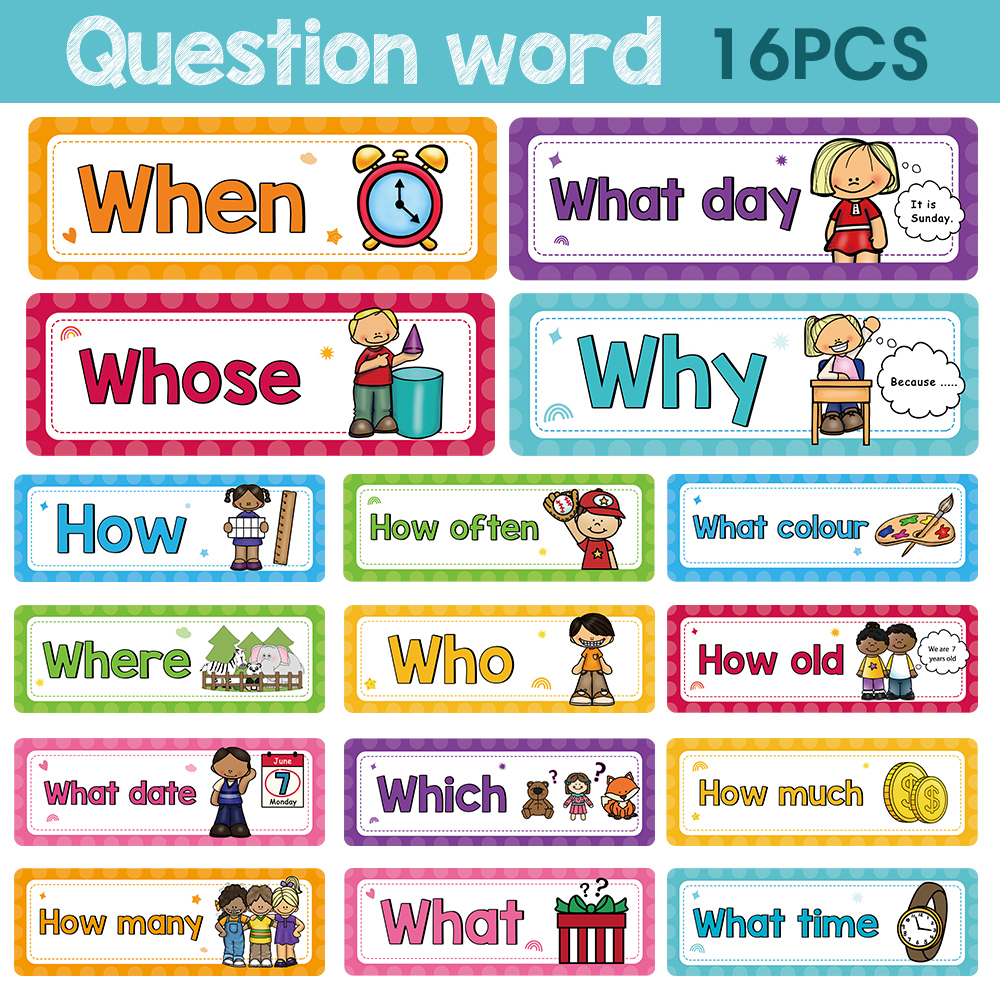 어린이 질문 단어 학습 플래시 카드 교실 장식 유치원 교육 보조 장난감 16 개