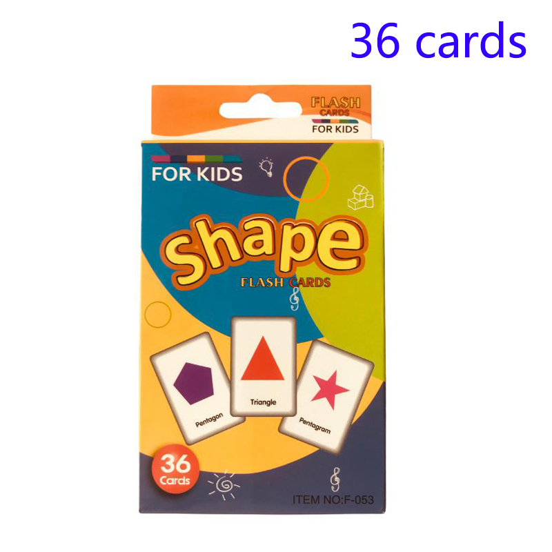 - 제품 이름: 36Pcs 어린이 인식 카드 모양 동물 색상 교육 아기 영어 학습 플래시 카드 조기 교육 장난감 몬테소리 선물