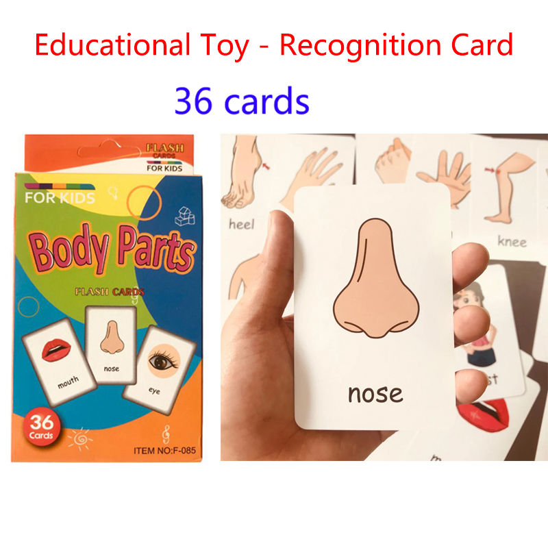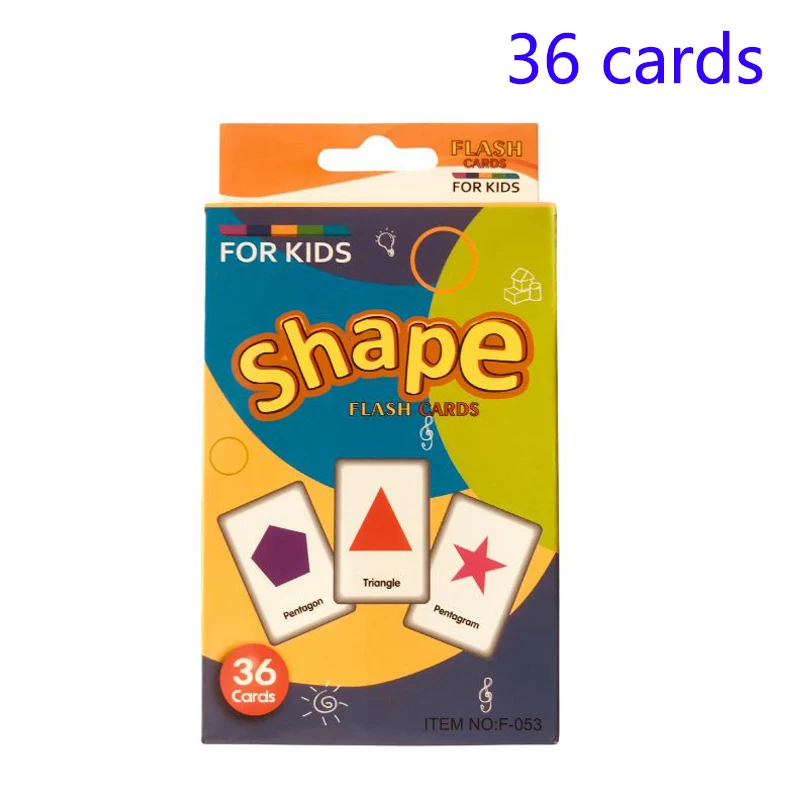 제품 이름: 36Pcs 어린이 인식 카드 모양 동물 색상 교육 아기 영어 학습 플래시 카드 조기 교육 장난감 몬테소리 선물