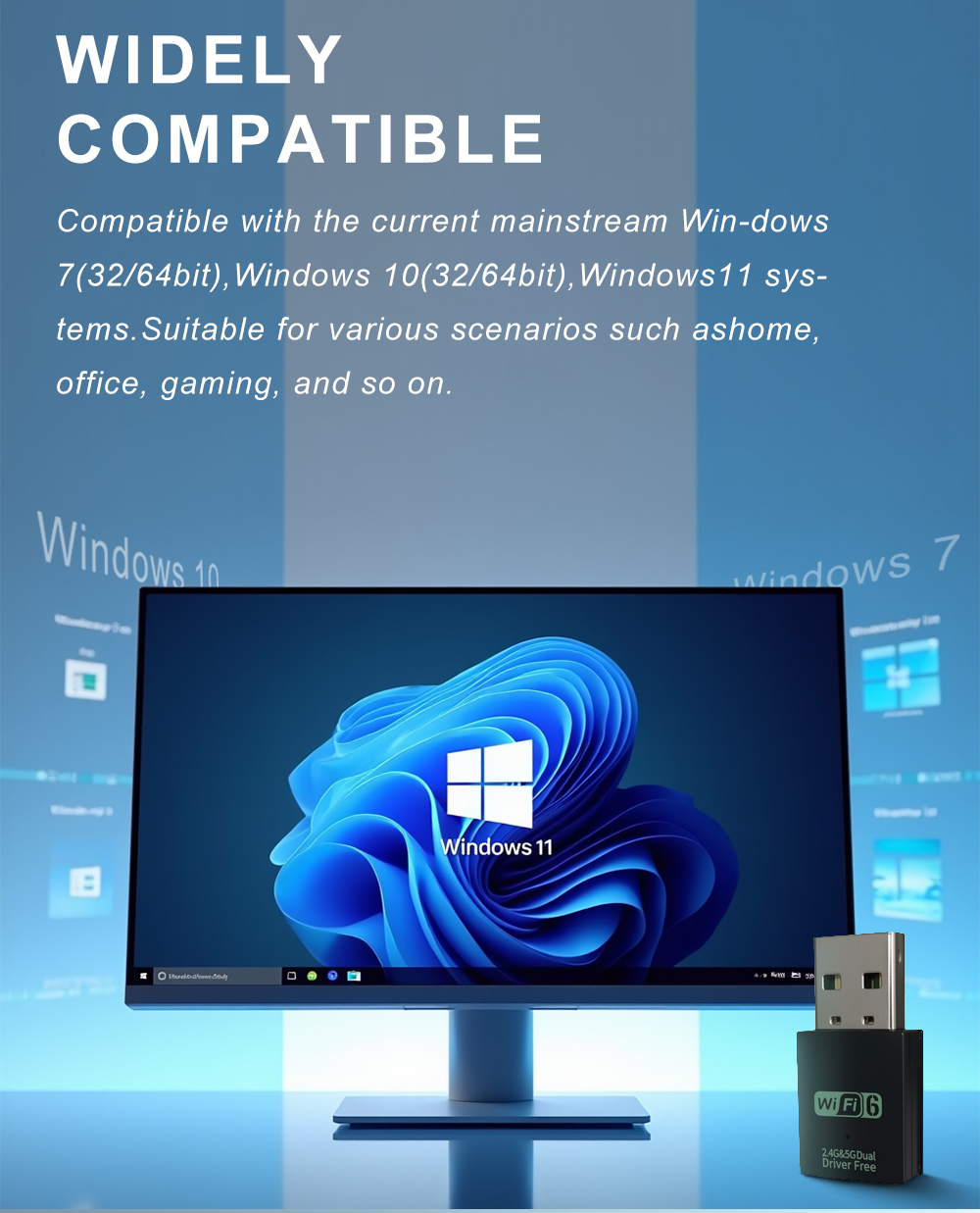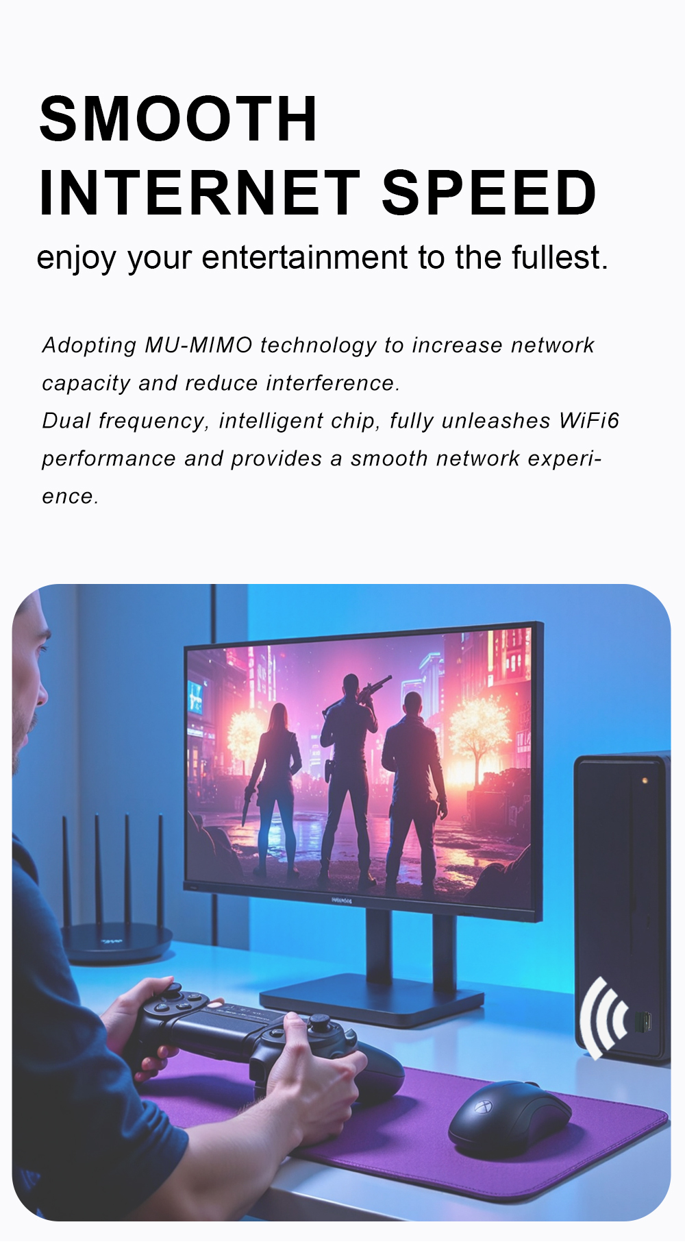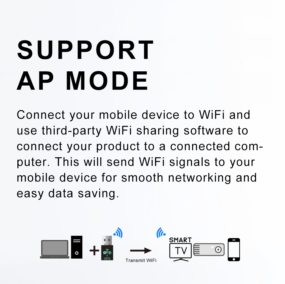 600Mbps 전송 속도, 더 빠른 연결, 더 원활한 인터넷; 내장 드라이버 자동 설치, 에너지 절약 및 더 많은 걱정; 컴팩트한 모양으로 사용하거나 휴대하는 것이 더 편리합니다.네트워크 카드나 시뮬레이션 AP로 사용할 수 있어 WLAN 구축이 쉽습니다.