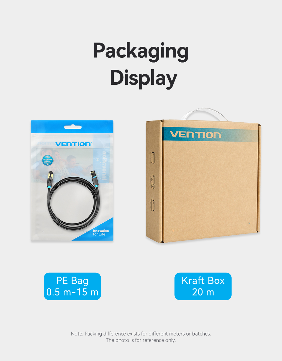 내구성이 뛰어난 Vention Cat8 이더넷 케이블은 내구성을 고려하여 제작되어 교통량이 많은 지역과 장기간 사용에 이상적입니다.