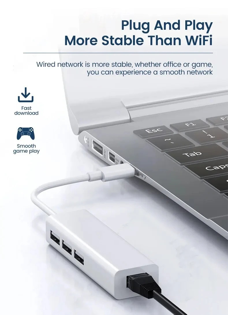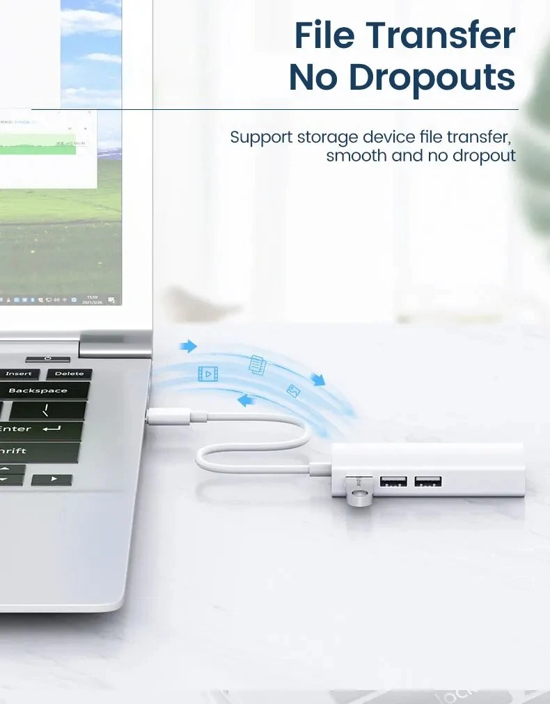 인터페이스: TYPE-C에서 RJ45로; 3포트 USB 허브