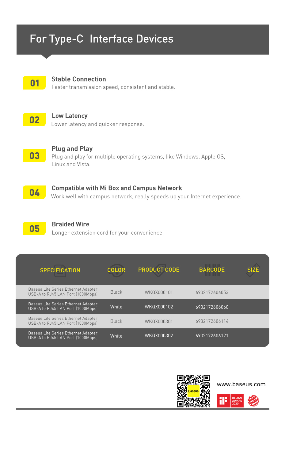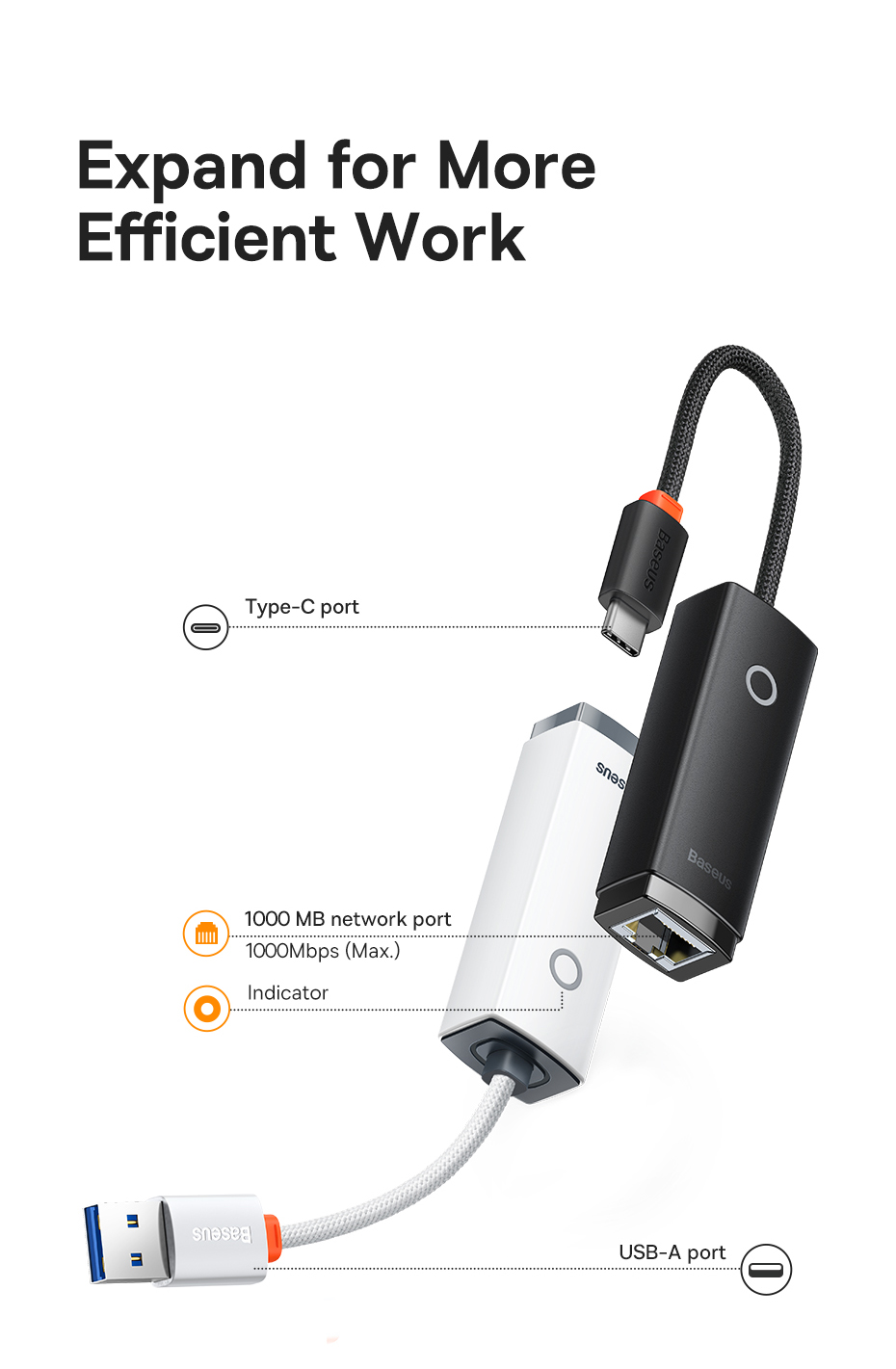[01]Black USB-C 1000M | [02]White USB-C 1000M | [03]White USB 1000M |