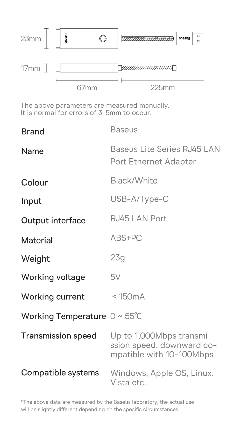 | 모델 번호 | BASEUS USB C ethernet adapter |