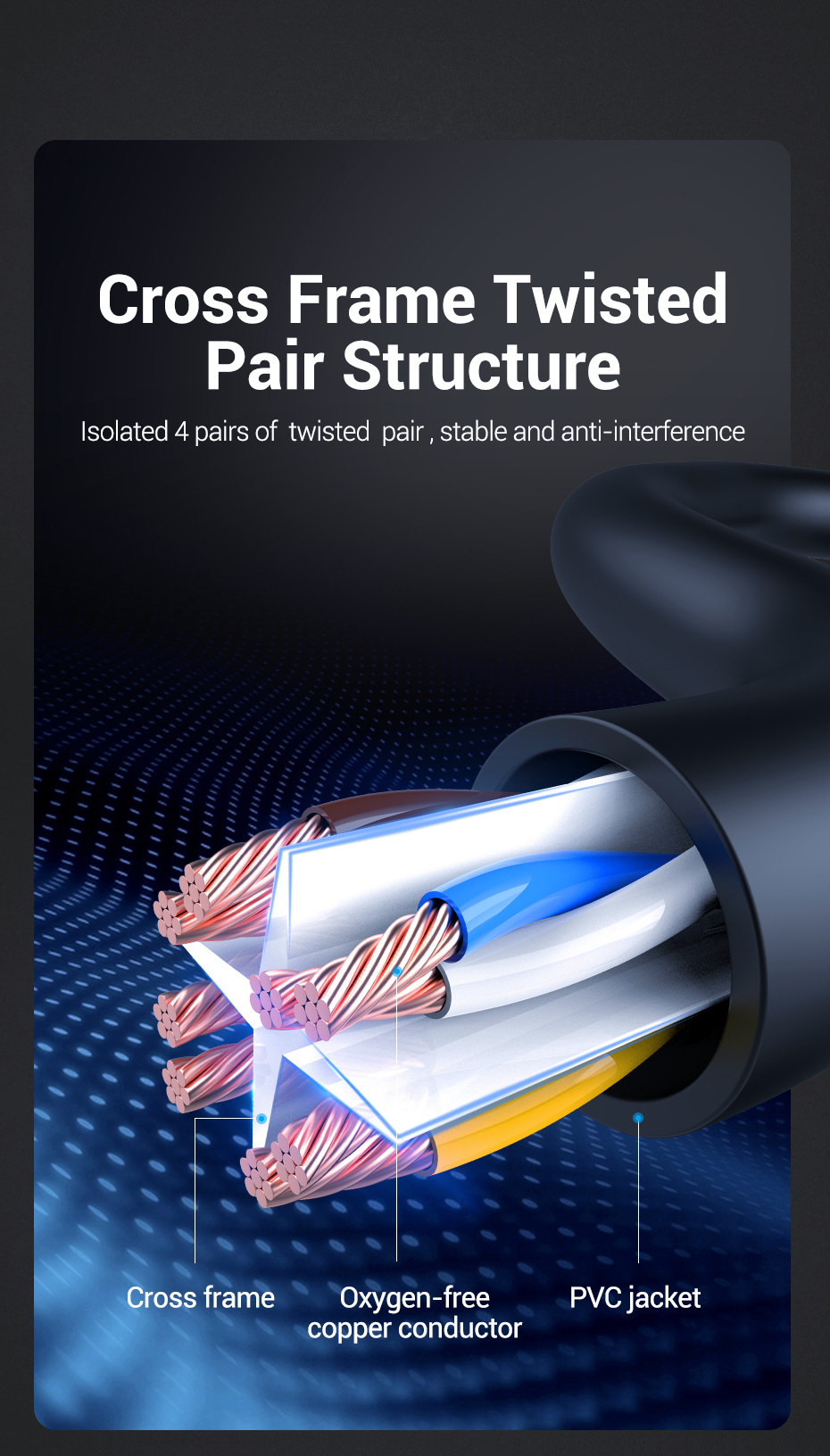 3) RJ45 금도금 커넥터가 있는 UTP(Unshielded Twisted Pair) 패치 케이블은 100% 순동선으로 만들어져 소음과 간섭을 최소화합니다.