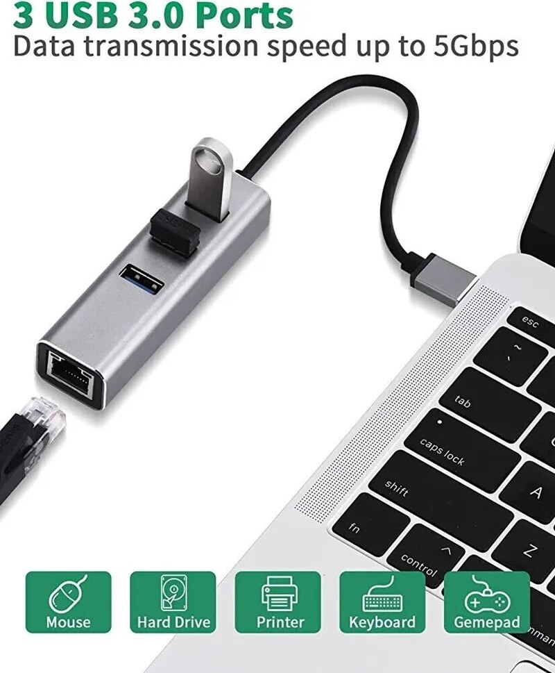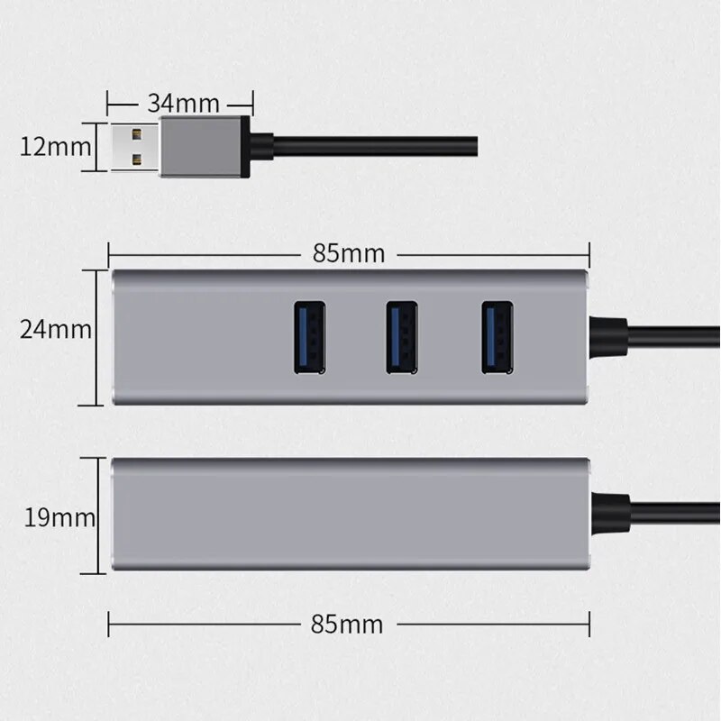 USB 3.0 기가비트 이더넷 LAN RJ45 1000Mbps 네트워크 어댑터 4 포트 허브 유선 외부 고속 알루미늄 합금 PC 맥 윈도우