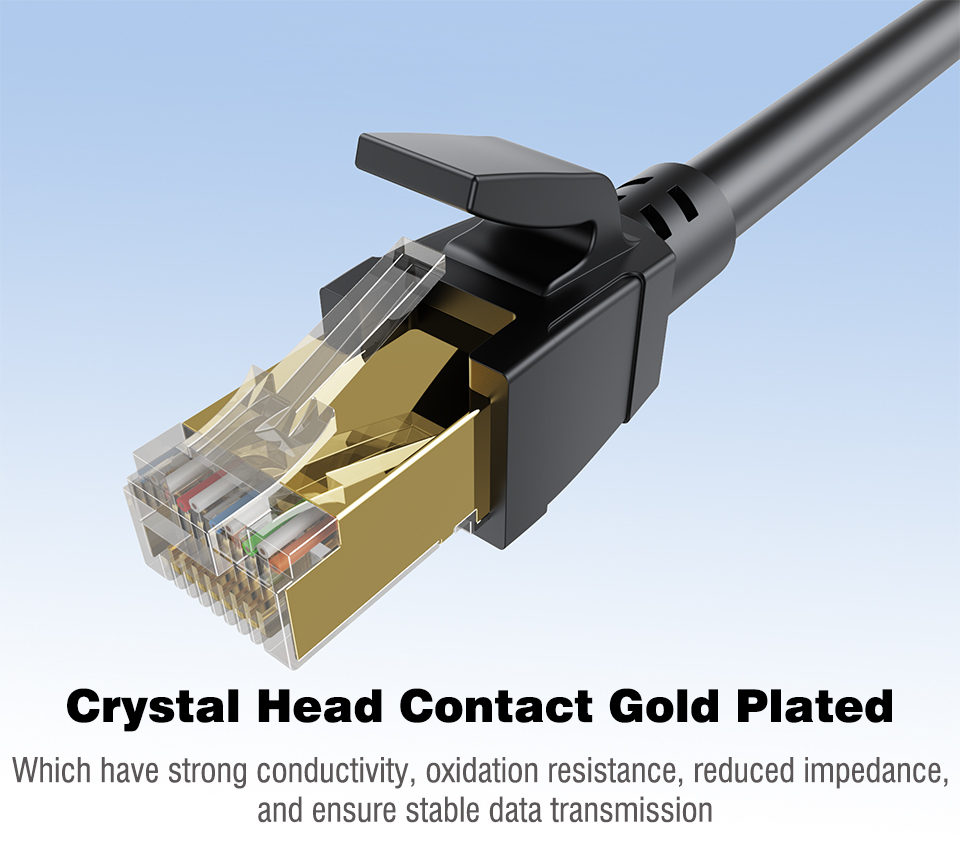 크리스탈 헤드 접점은 더 나은 접촉과 산화 방지를 위해 금도금 처리되어 있으며 2000회 이상의 삽입 및 추출 테스트 후에도 느슨해지지 않습니다.외부 커버는 두꺼운 PVC로 제작되었으며 전체 케이블 직경은 6.5mm에 달해 5000도 이상의 굽힘에도 견딜 수 있습니다.
