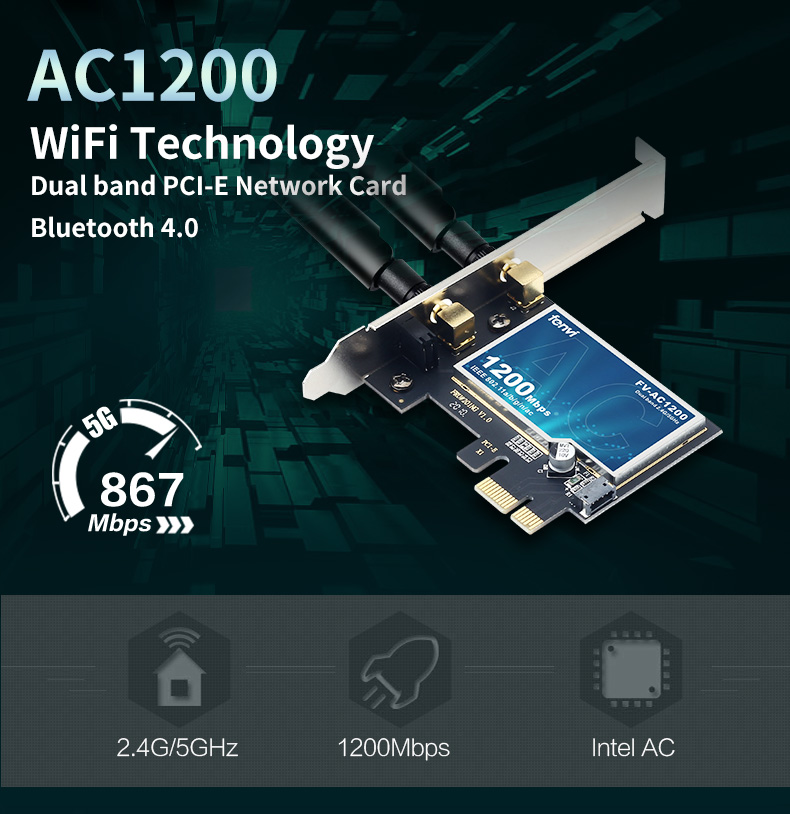 듀얼 밴드 1200Mbps 무선 PCI-e 데스크탑 802.11ac 무선 랜 카드 어댑터 블루투스 4.0 네트워크 2.4G/5GHz 데스크탑 승리 7 8 10