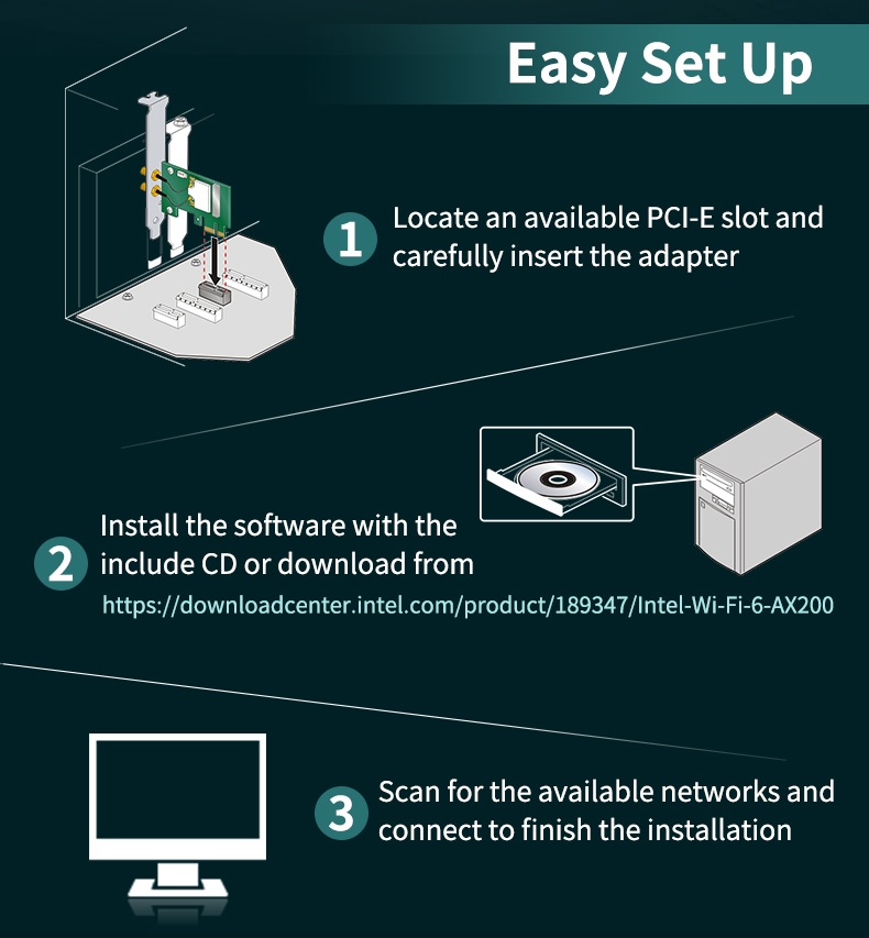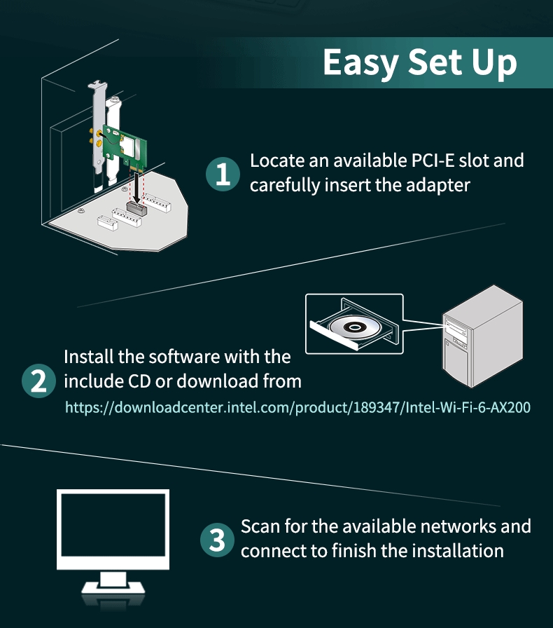 즉각적인 802. 데스크탑 PC용 11ac/ax Wi-Fi 업그레이드: 더 이상 지저분한 이더넷 케이블이 필요하지 않습니다.