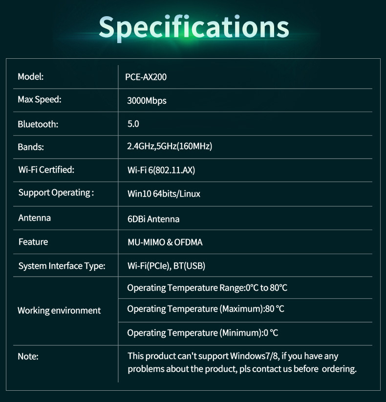 인텔 AX200 프로 카드 802.11ax 2.4G/5Ghz 블루투스 5.1 3000Mbps 듀얼 밴드 무선 데스크탑 PCIe
