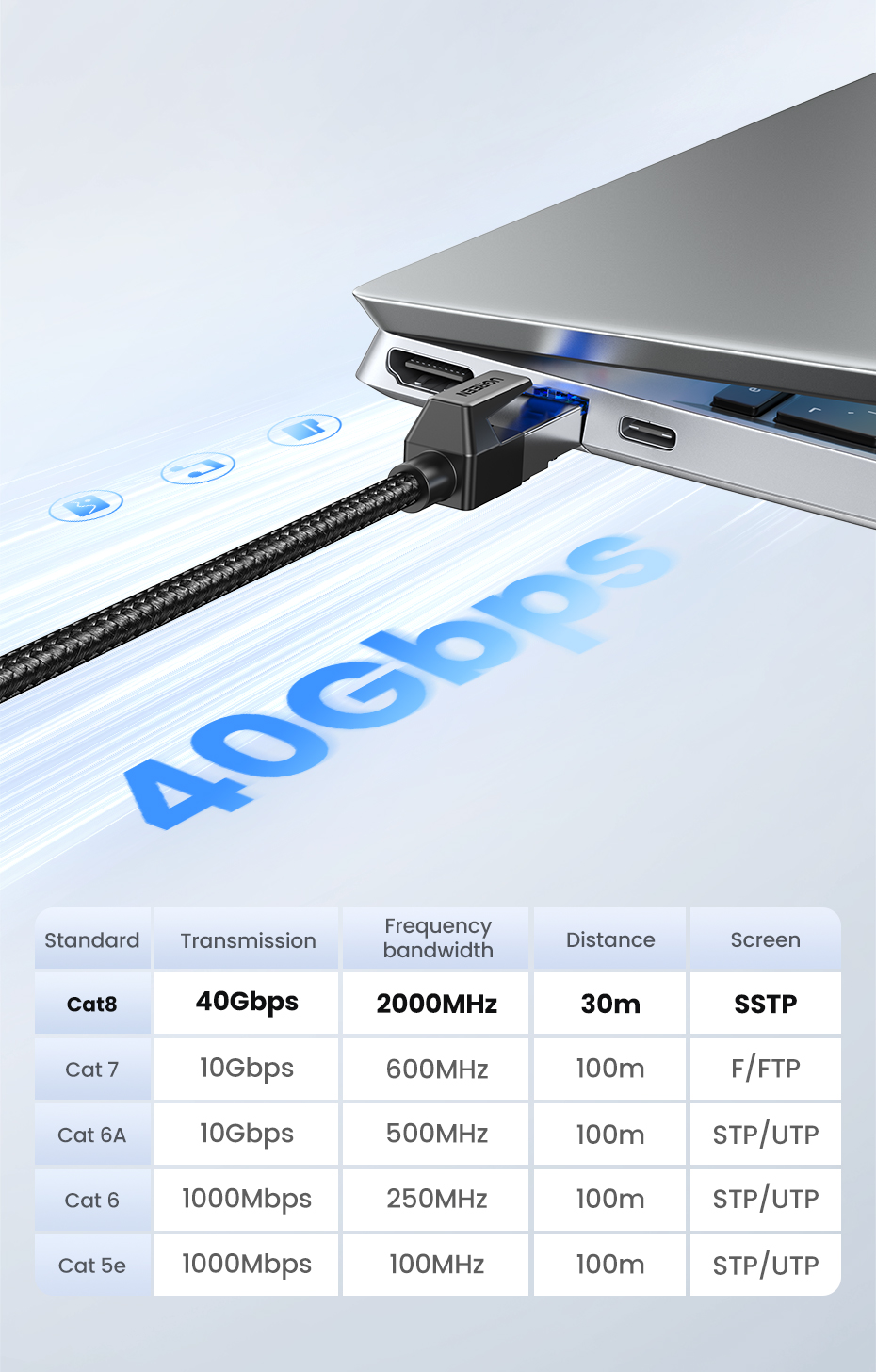 ? 고속 전송:최대 4000 Mbps 전송을 지원하는이 CAT8 케이블로 초고속 인터넷 속도를 즐기십시오.