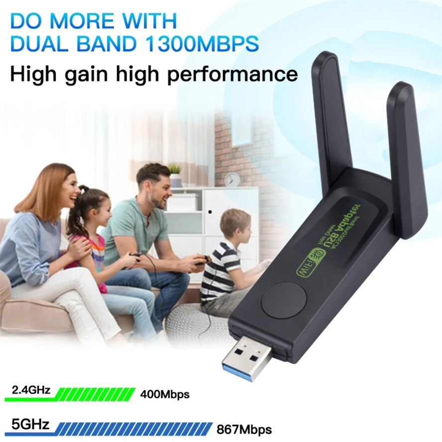 1300Mbps USB WiFi 어댑터 듀얼 밴드 2.4Ghz/5Ghz 무선 WiFi 동글 안테나 PC 노트북 용 USB 이더넷 네트워크 카드 수신기