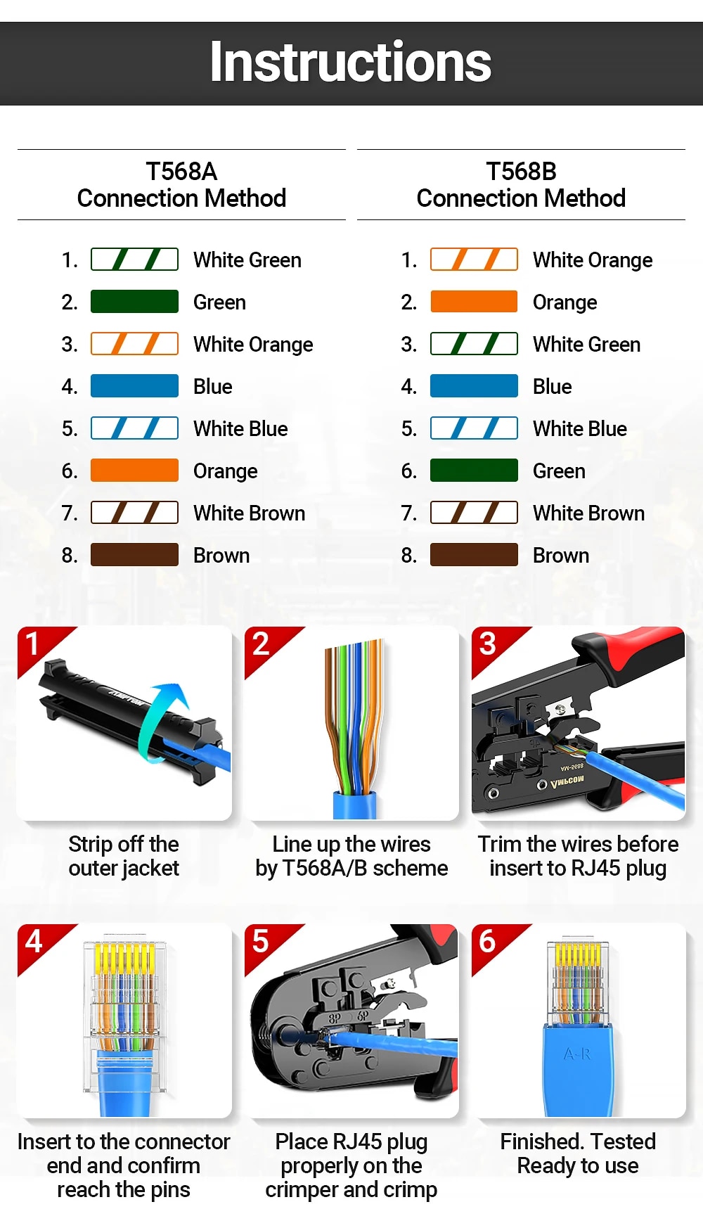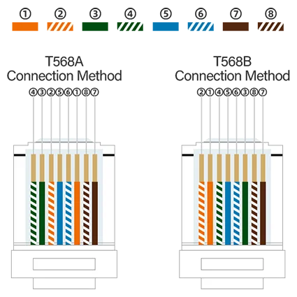 2. T568A/B 연결 방법에 따라 전선을 정렬하고 전선을 커넥터에 가장 깊은 위치에 놓습니다. |