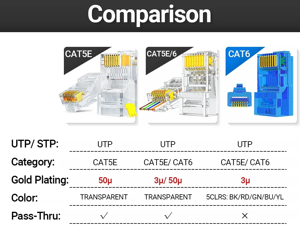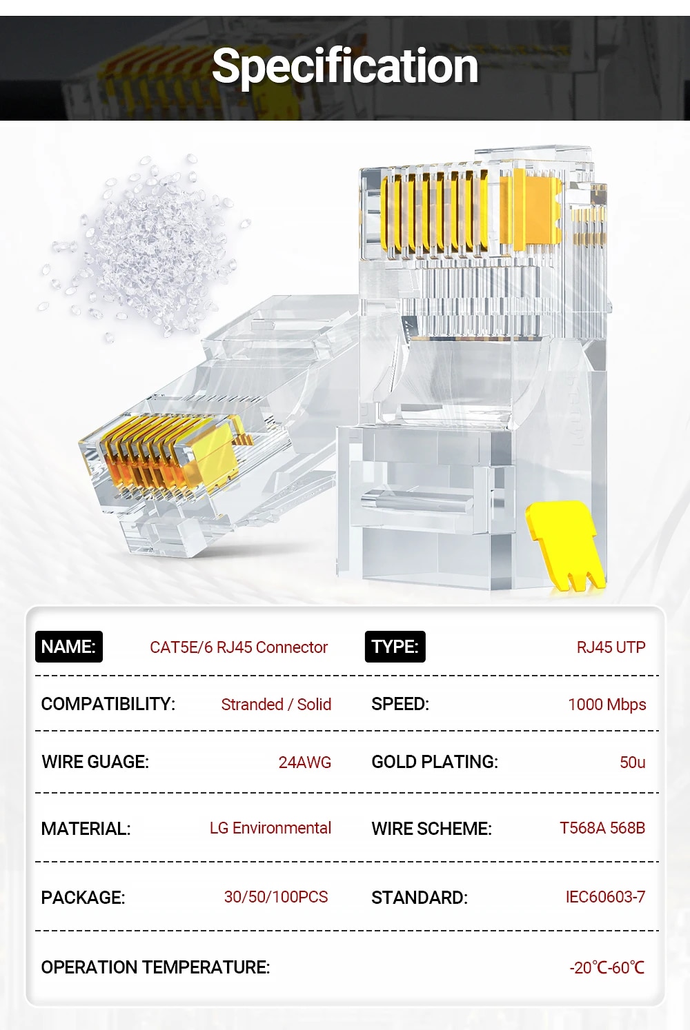 광범위한 응용 분야: 3 구 접점 핀은 솔리드 도체와 연선 도체 모두에 적절하게 걸릴 수 있습니다. CAT5E/5 케이블 및 POE 지원에 적합. CCTV, 라우터, 스위치, 프린터, 허브, PC 및 서버에 사용 |