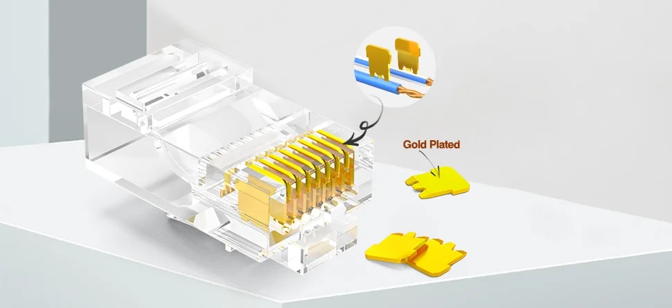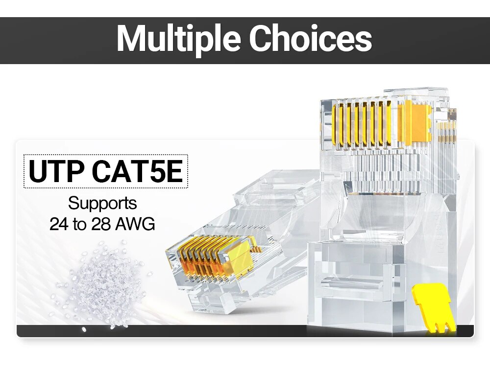 ? 고속 전송:최대 LAN 데이터 속도가 1000Mbs 인이 AMPCOM CAT5e RJ45 커넥터는 고속 네트워크 연결을 보장하여 효율성과 생산성을 향상시킵니다.
