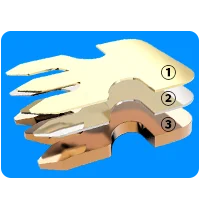 ① 50U 두꺼운 금도금 층 ②니켈 도금 층 ③인 구리베이스층 |