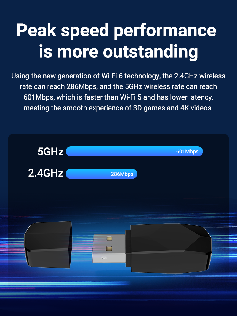 전송 속도:5GHz: 601Mbps; 2.4GHz: 286Mbps.