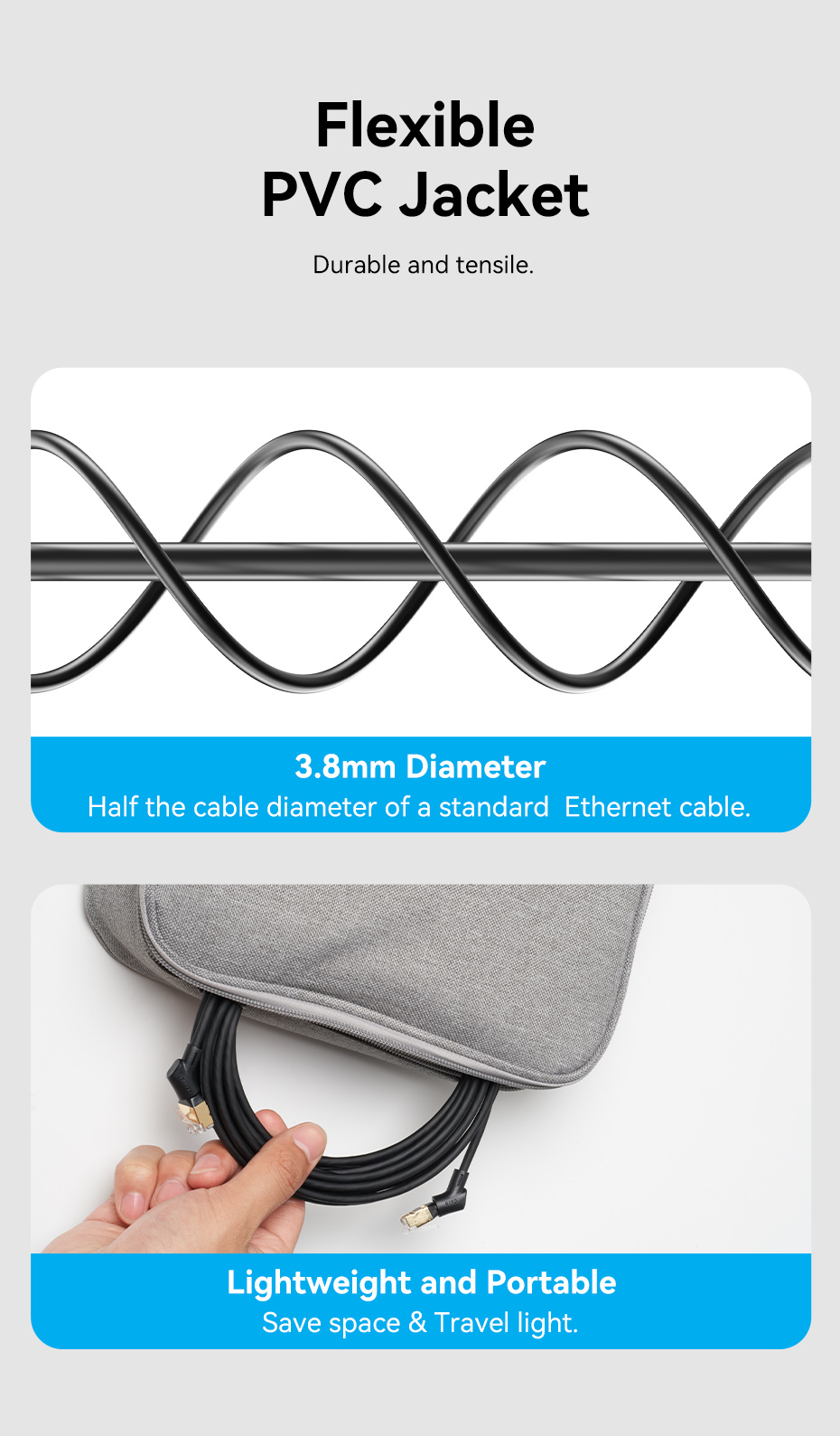 3.8mm 케이블 두께 덕분에 가장 좁은 공간을 통해 라우팅할 수 있습니다.