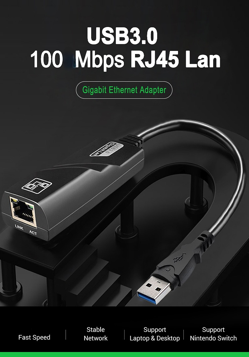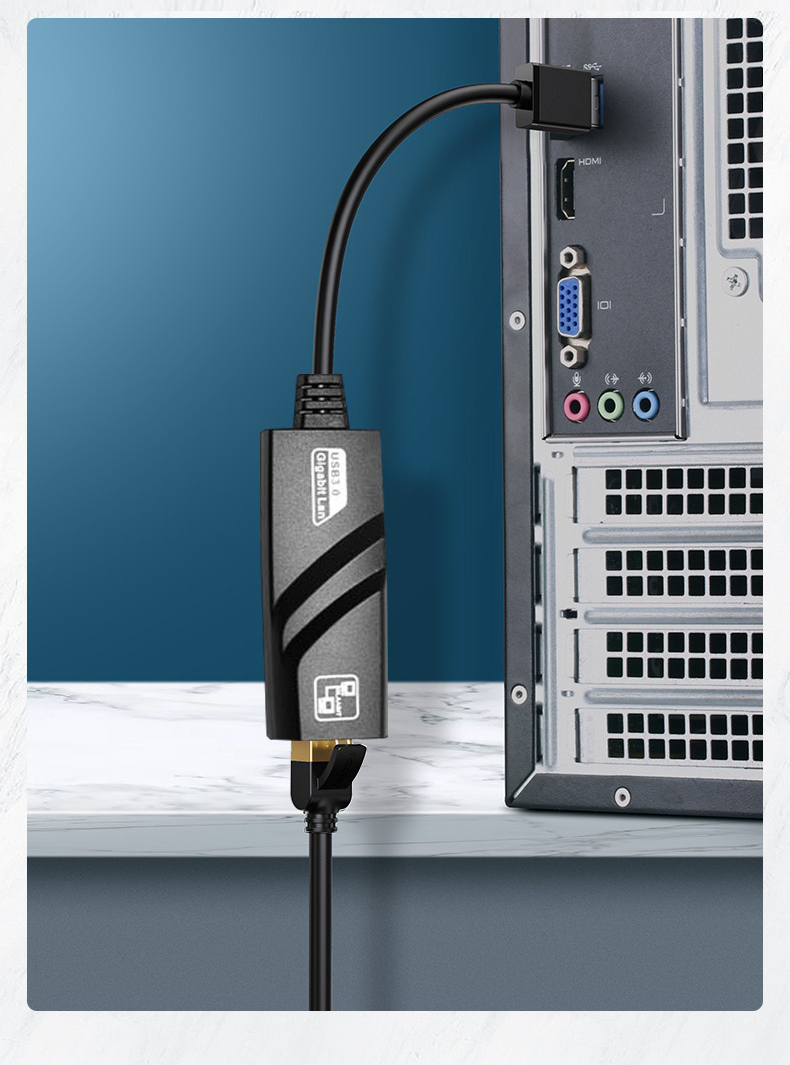기가비트 이더넷 어댑터는 100Mps의 전체 대역폭에서 기가비트 네트워크 연결을 지원하는 USB 지원 컴퓨터 시스템에 단일 RJ45 이더넷 포트를 추가합니다.