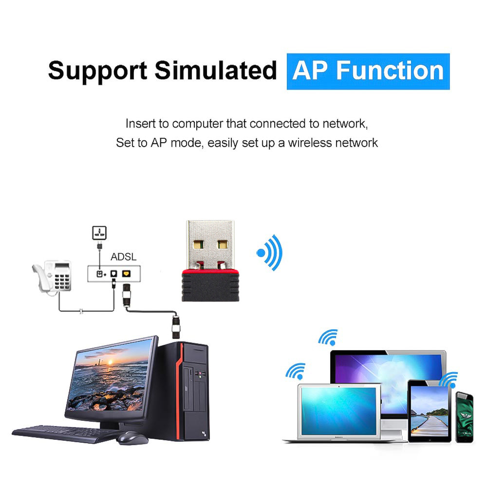 초소형 무선 802.11n Wi-Fi 어댑터