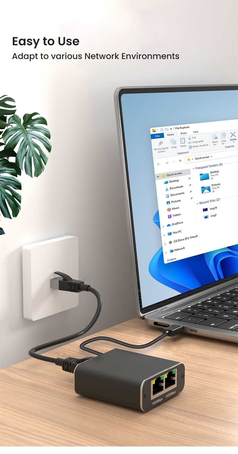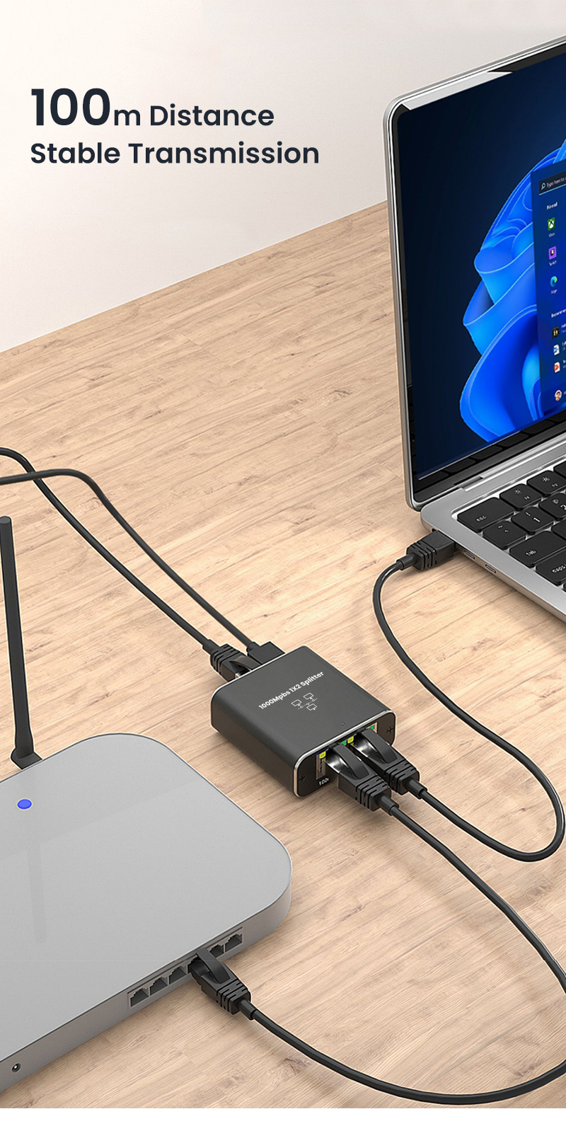이 고속 이더넷 분배기를 사용하면 네트워크 연결을 두 개의 출력 포트로 나눌 수 있으며 각 포트 그룹(1 및 2)은 최대 1000Mbps의 속도에 도달할 수 있습니다.두 신호 사이에는 간섭이 없으므로 효율적이고 안정적인 데이터 전송이 보장됩니다.대용량 데이터를 빠르고 효과적으로 전송해야 하는 환경에 적합합니다.1000Mbps는 칩셋의 이론상 최대 속도이며, 실제 속도는 연결된 장치에 따라 다를 수 있습니다.