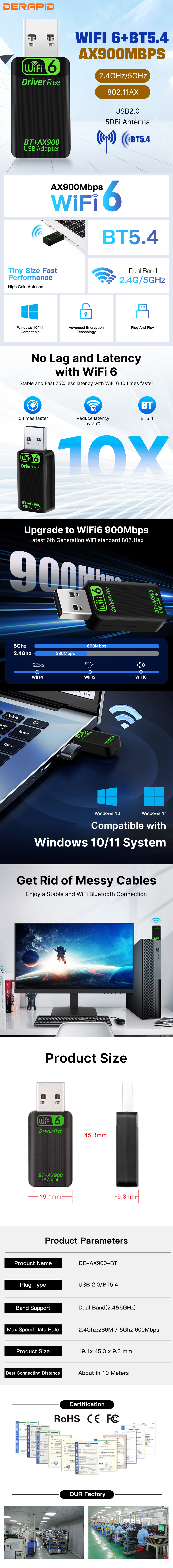 (2).2.4G/5G WiFi6+BT 5.4 USB Adapter (Driver Free)