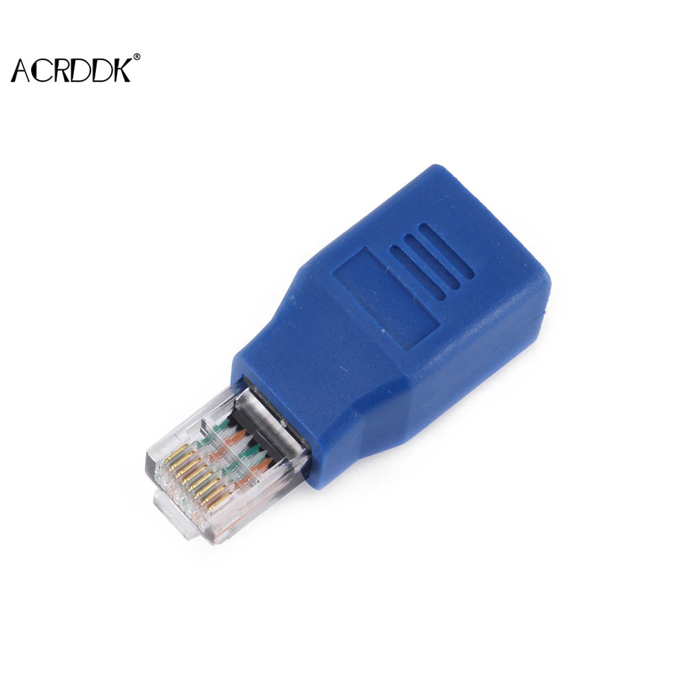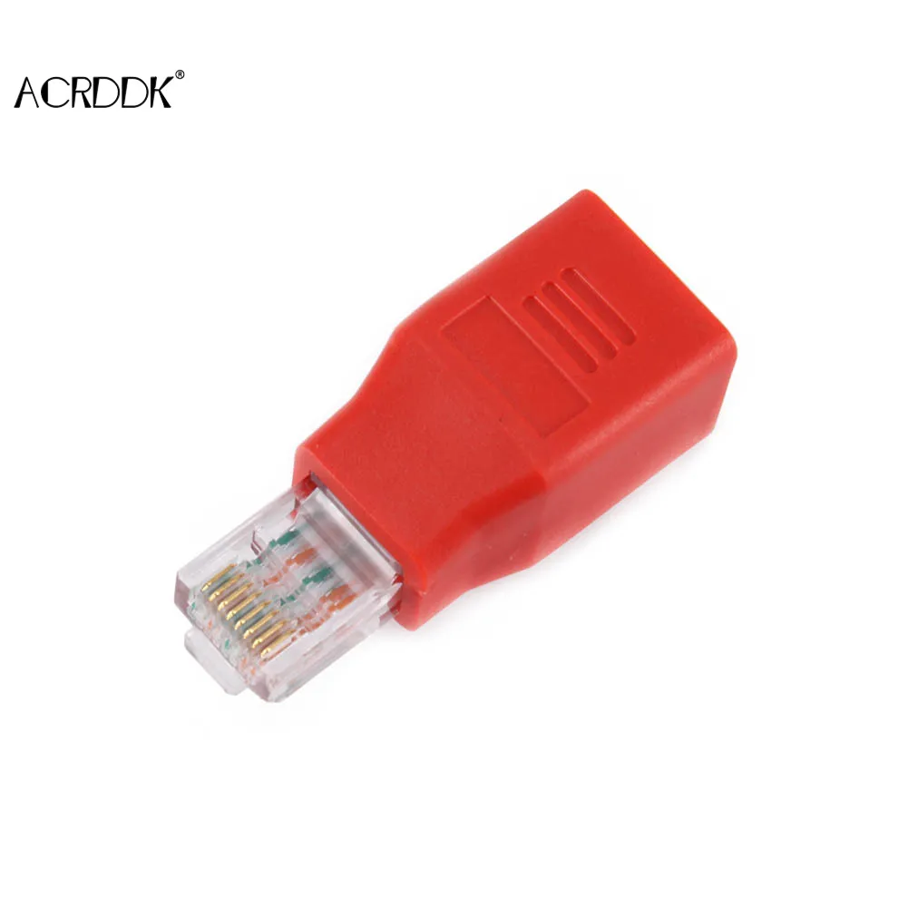 3. Convert your patch cable/ straight through cable into a crossover cable by connecting it to this adapter.
