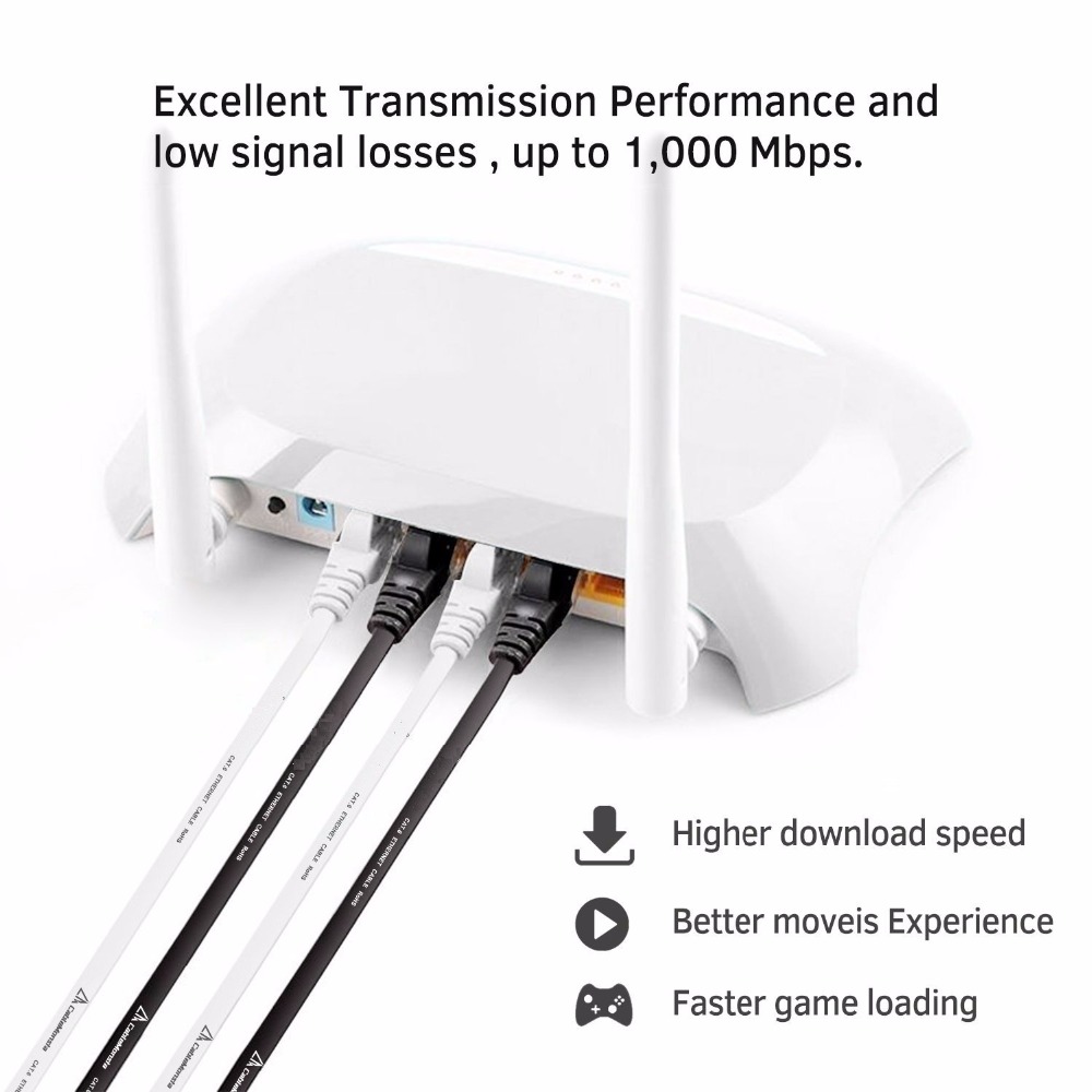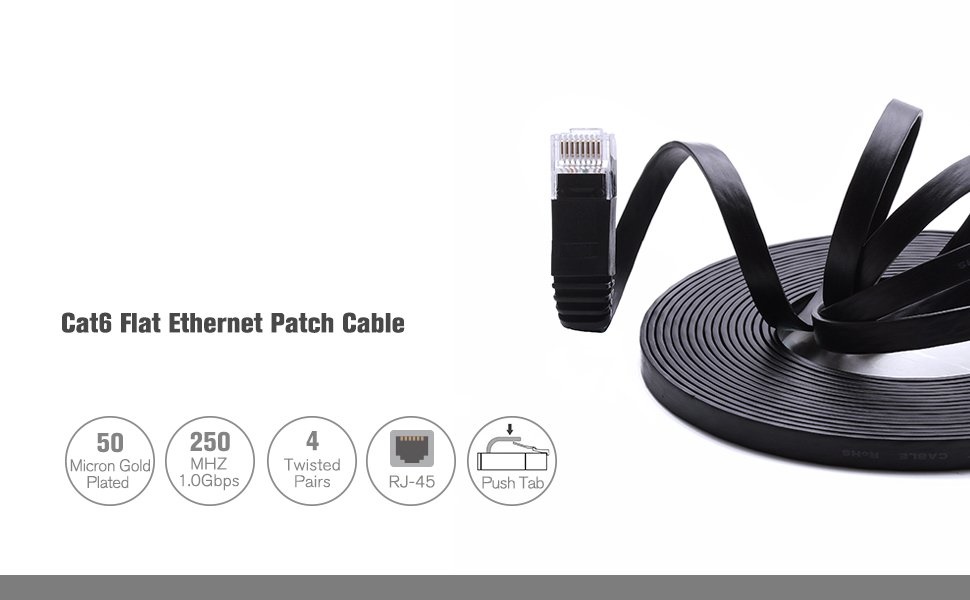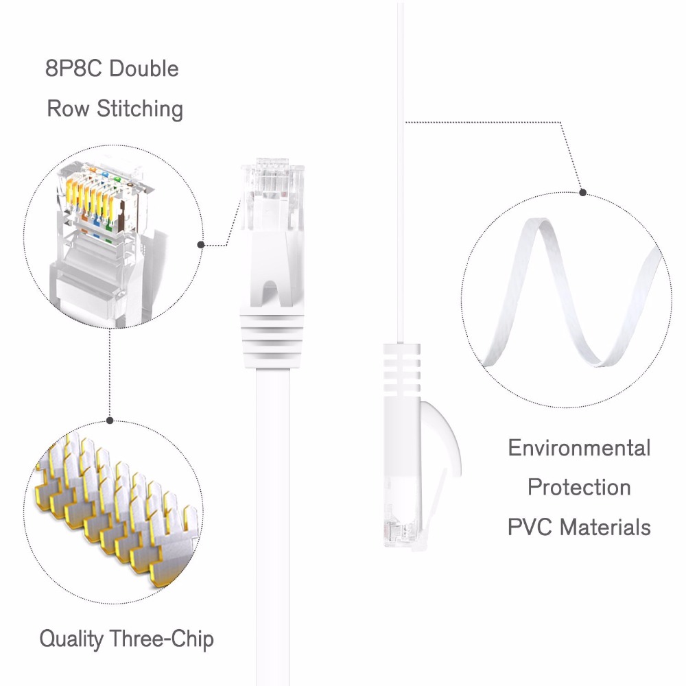 The flat ethernet cable is only 0.05 inch thickness, it is light-weighted and bendable, you can place it under the carpet or around corners without hassle.